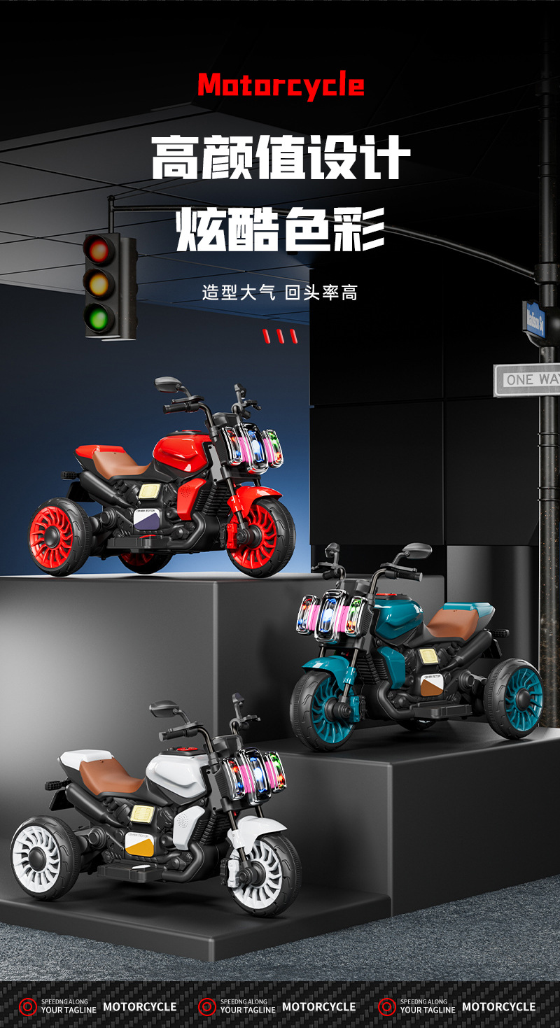 新款儿童电动摩托车男女宝宝可坐三轮车款充电户外骑行电瓶三轮车