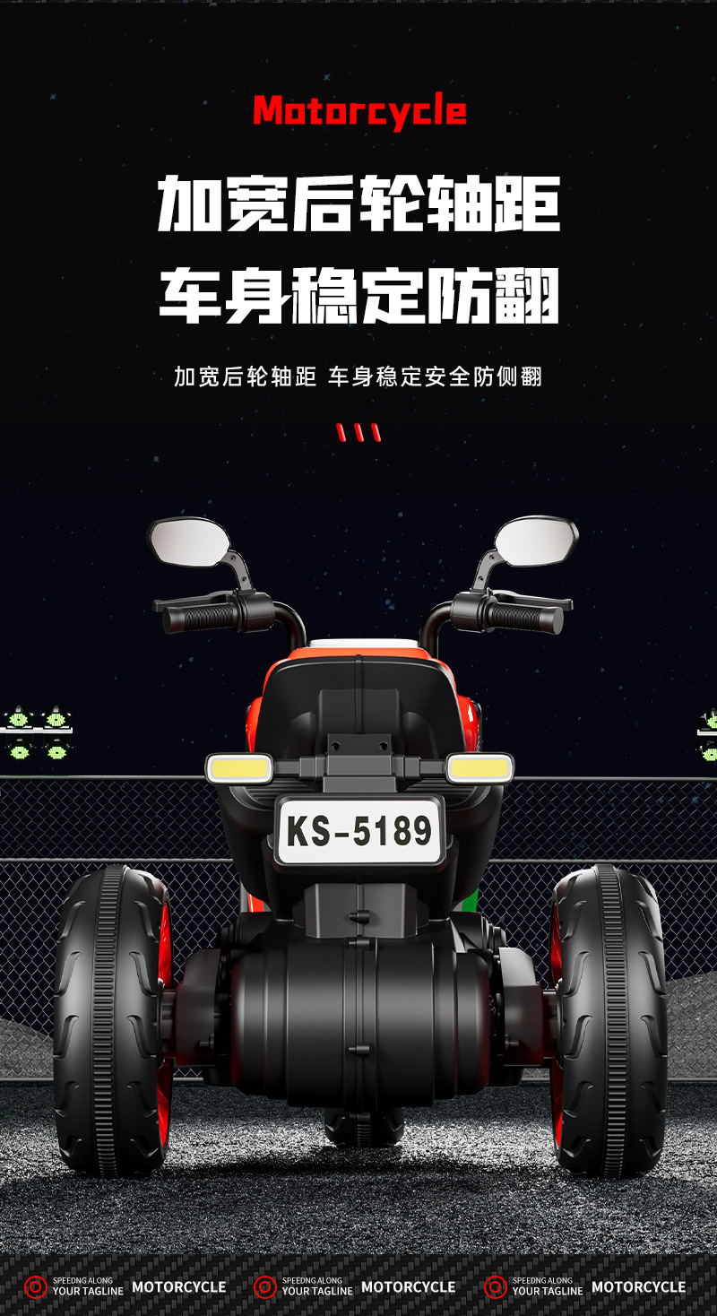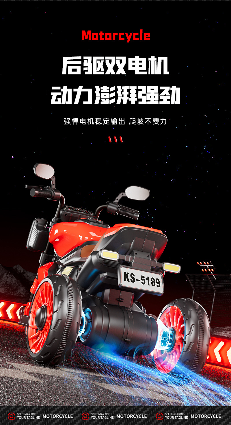 儿童电动摩托车三轮车男女孩宝宝电瓶车小孩可坐人充电遥控玩具车