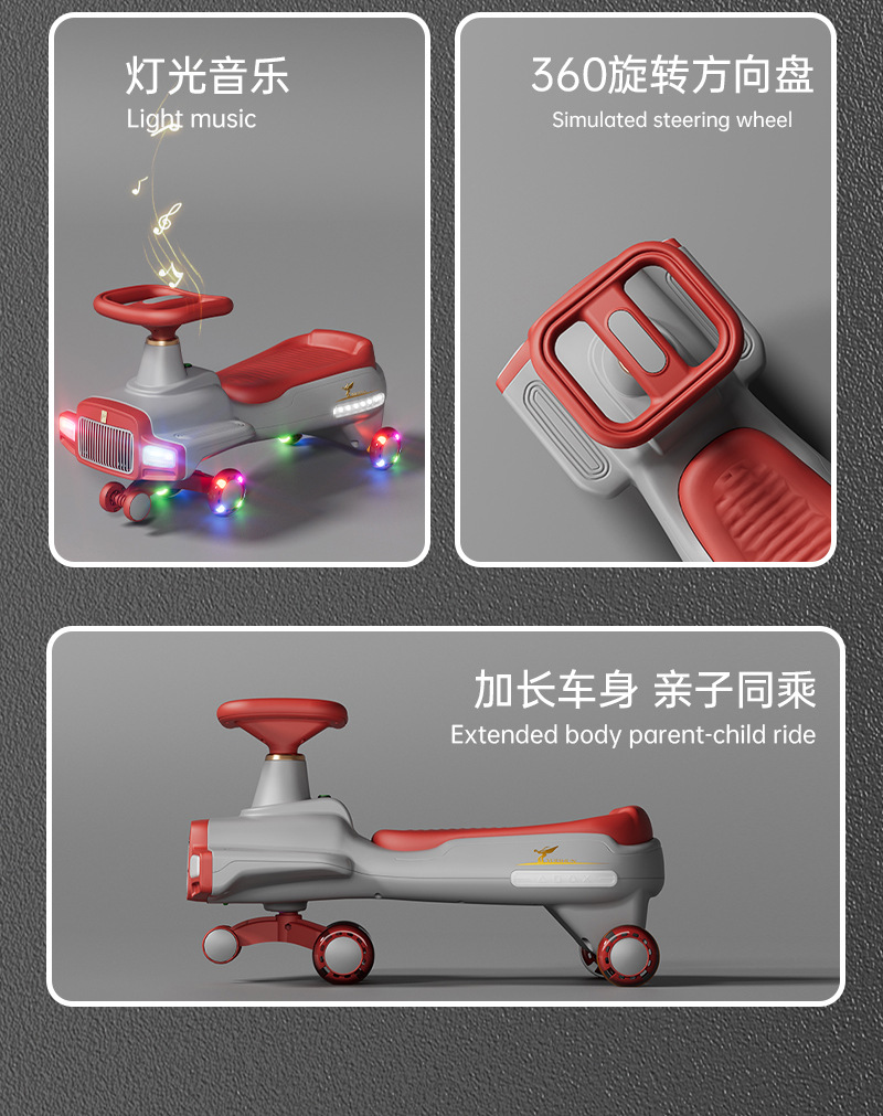儿童扭扭车3-6岁亲子共乘大人可坐防侧翻扭扭车带蓝牙溜溜摇摆车