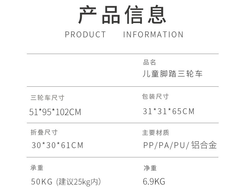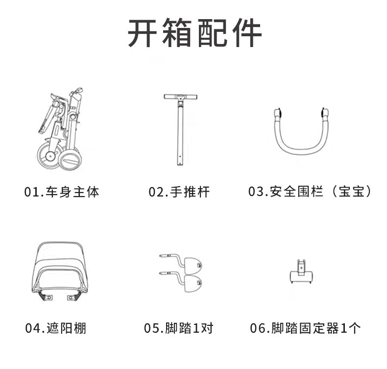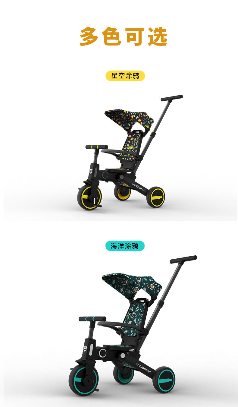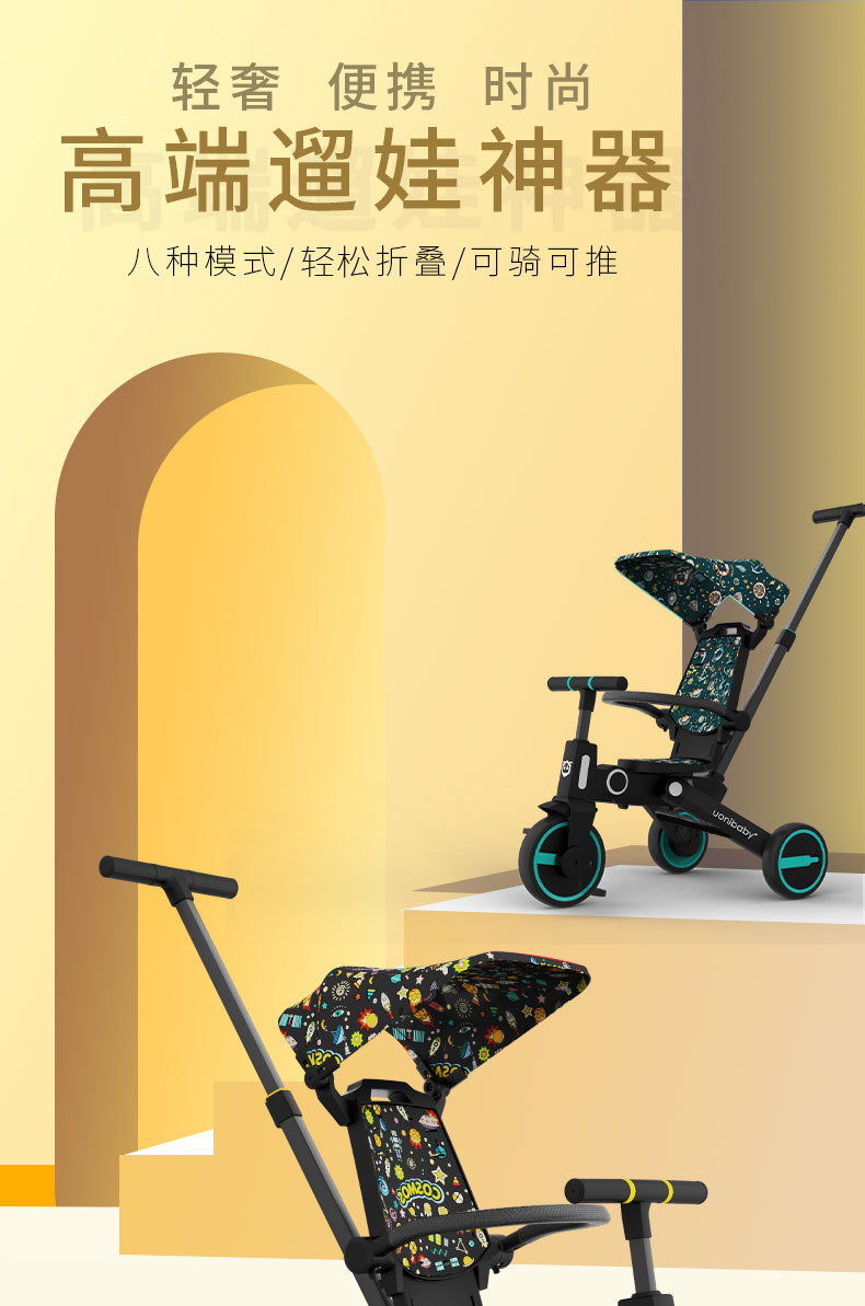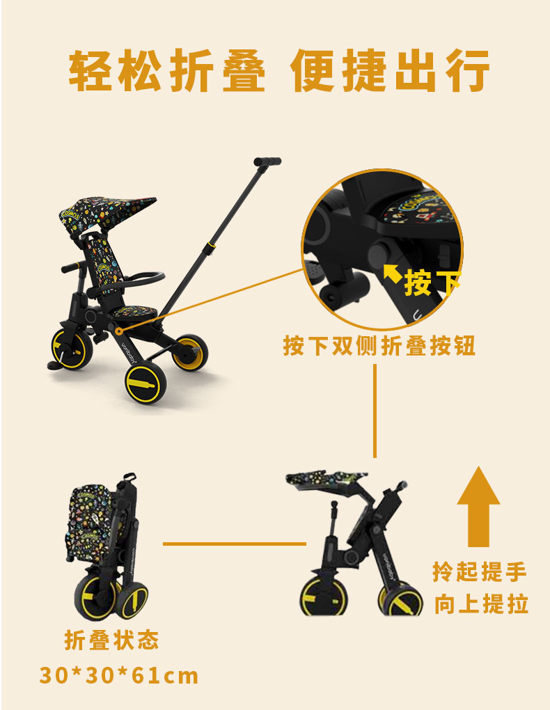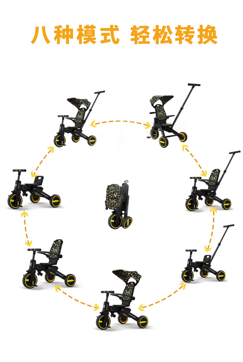 儿童三轮车遛娃手推车可折叠轻便婴儿宝宝脚踏车七合一折叠三轮车