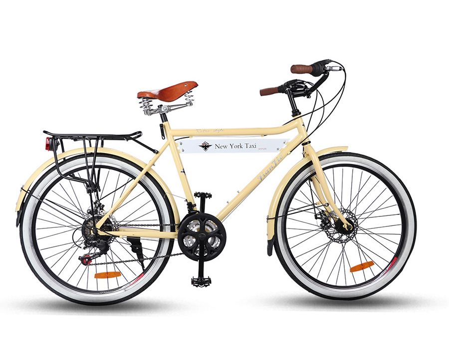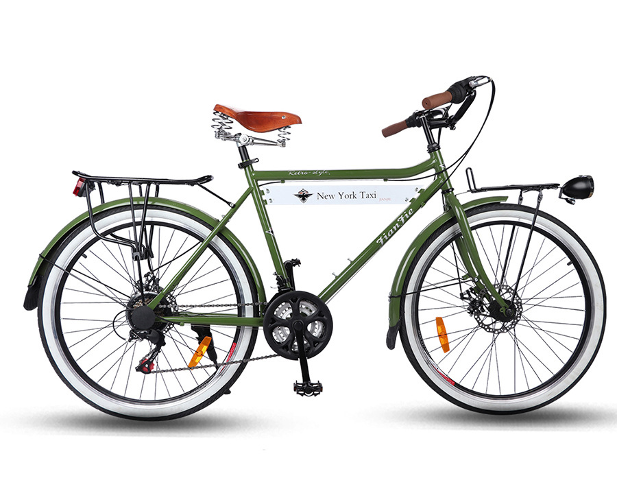 复古款成人脚踏车 黄/绿双色26#双碟刹变速单车 北欧风男女自行车