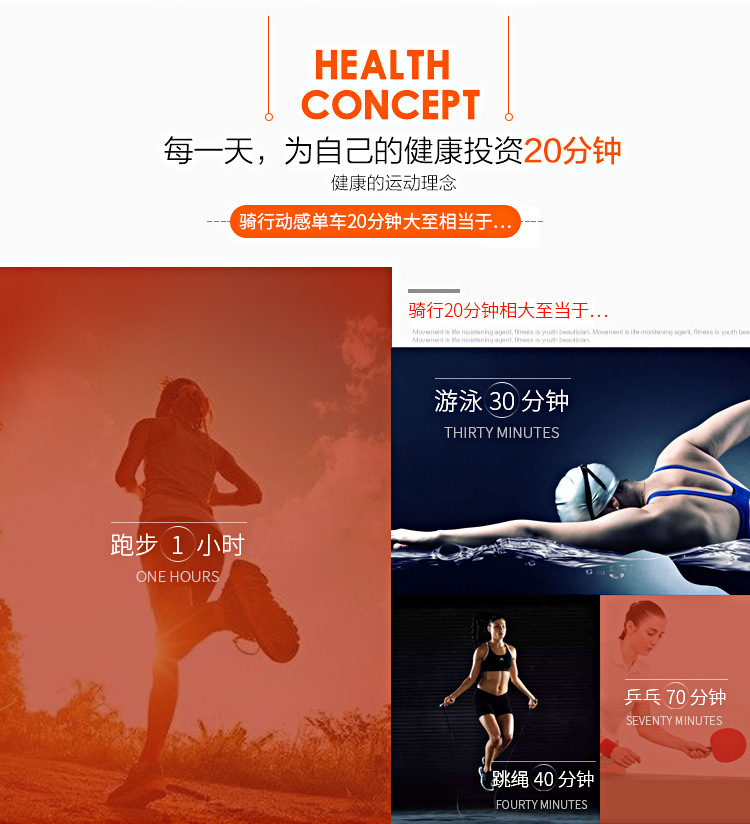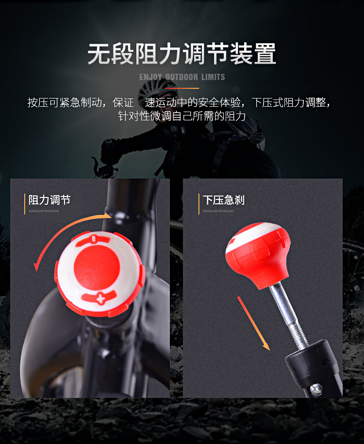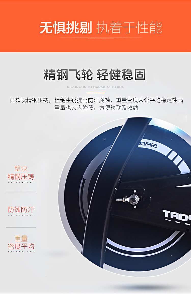 惯性大飞轮,阻力调节,计数器显示时间、速度、距离、消耗卡路里等,使训练者清楚了解自己的运动状况。拱桥型外观设计,线条流畅,时尚,承重好,稳定。