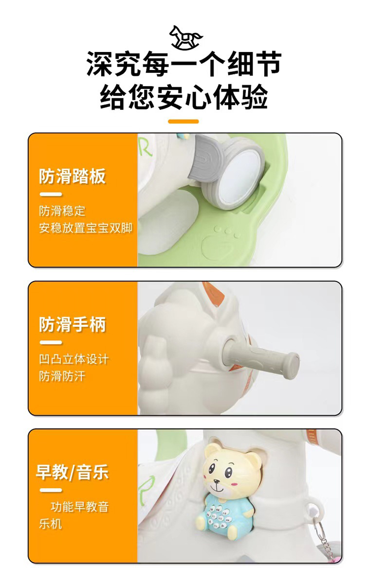Featured features: multiple functions, shaking, rocking, sliding, pushable