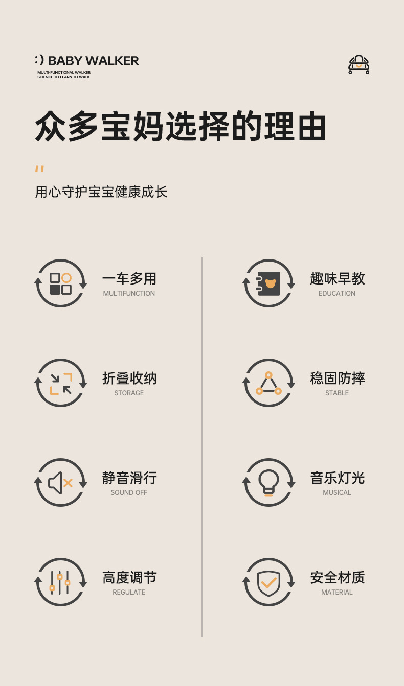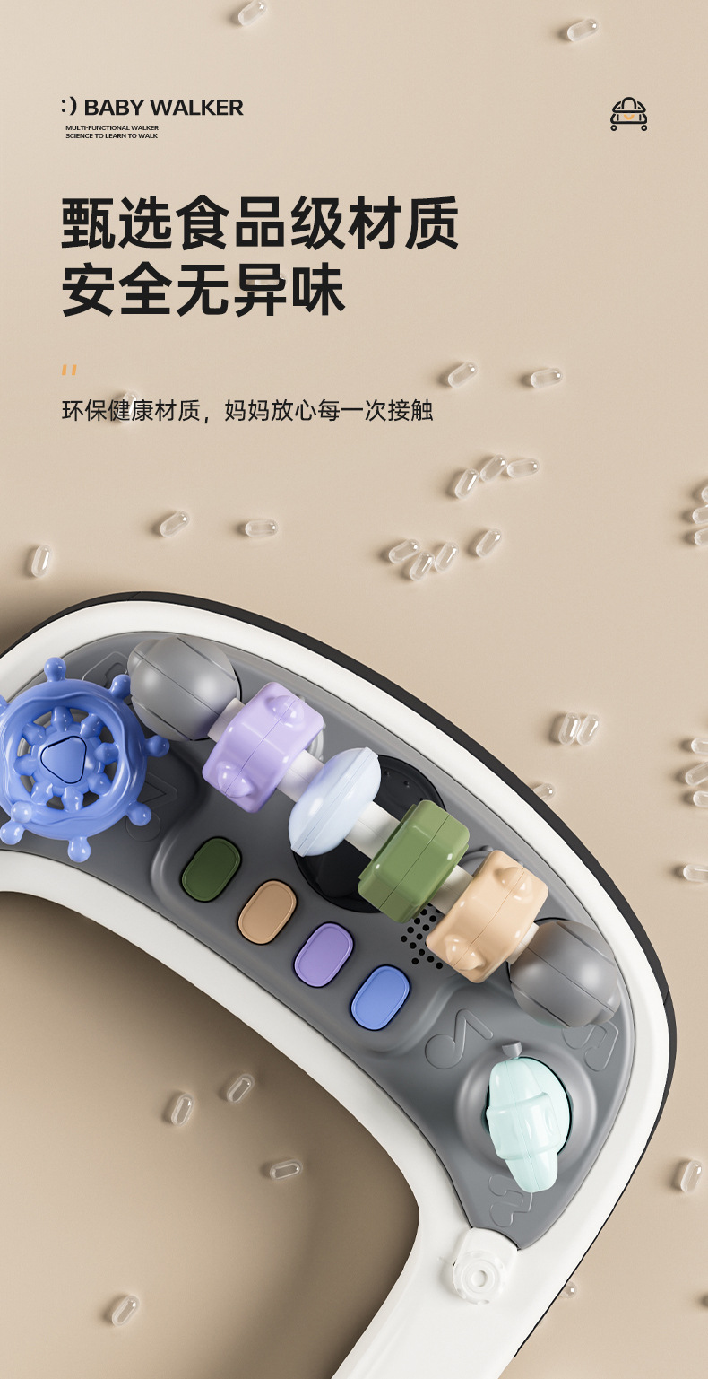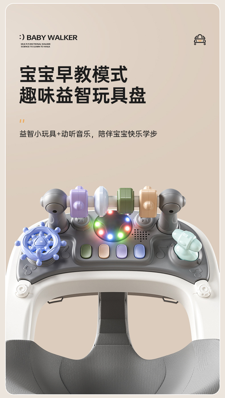 婴儿折叠塑料音乐推动婴儿学步车4合1 带轮子和座椅方盘学步车