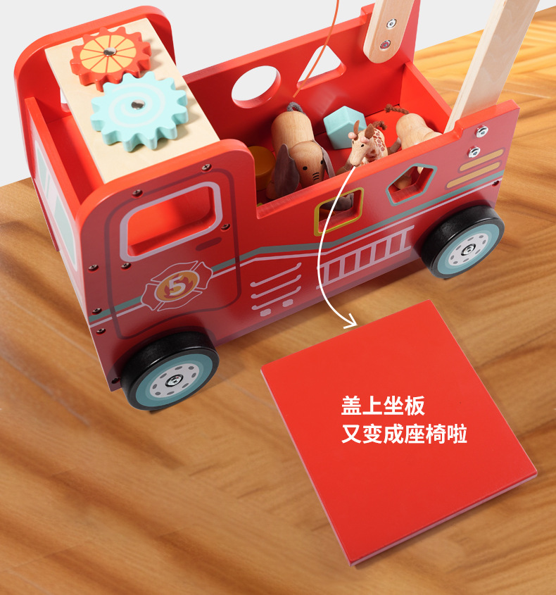 产品功能:这款产品是多共能集合为一体的幼儿学步车;12个月到4岁小朋友都可以玩耍,可以作为幼儿学步,承重60KG 中间盖板是可以打开,可收纳小朋友喜欢的玩具,DING部齿轮有助于小孩手眼协调,车子两边是图形积木,适合幼儿颜色配对,抓握认识图形,整体车身是一个消防车的造型,对于消防车的热爱 不管是男宝还是女宝 都是无可挑剔的,产品图片为实拍,整车采用了优质椴木+密度板 全身打磨光滑 无一点毛刺,整车采用了进口水漆放心使用,出口品质,内销价格,让你宝贝拥有一台可推,可骑 可收纳的好玩具哦