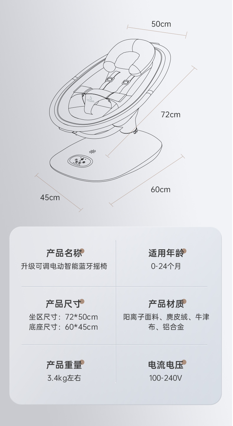 电动摇椅新生儿摇摆椅宝宝自动摇床坐垫可调节角度电动摇椅