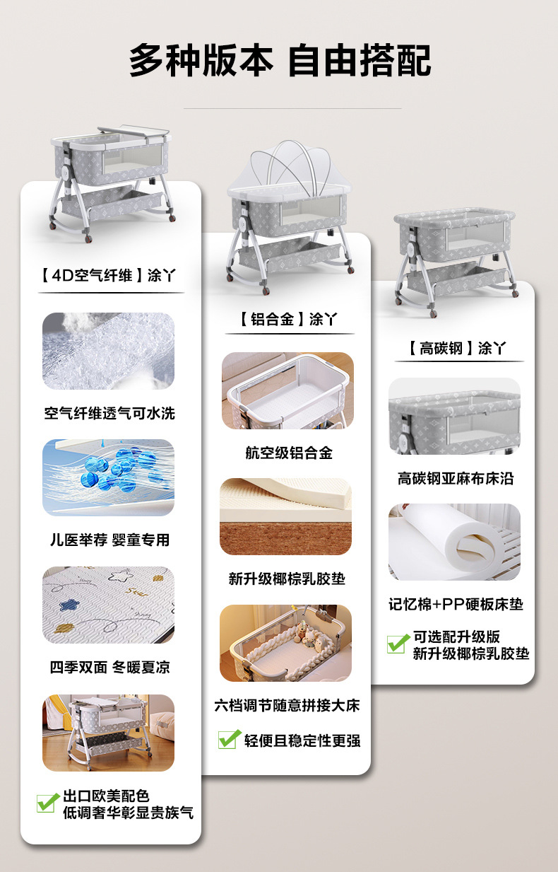 功能:可折叠,游戏床,双胞胎型,便携式,高度可调,有安全带