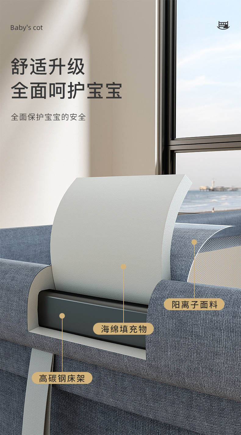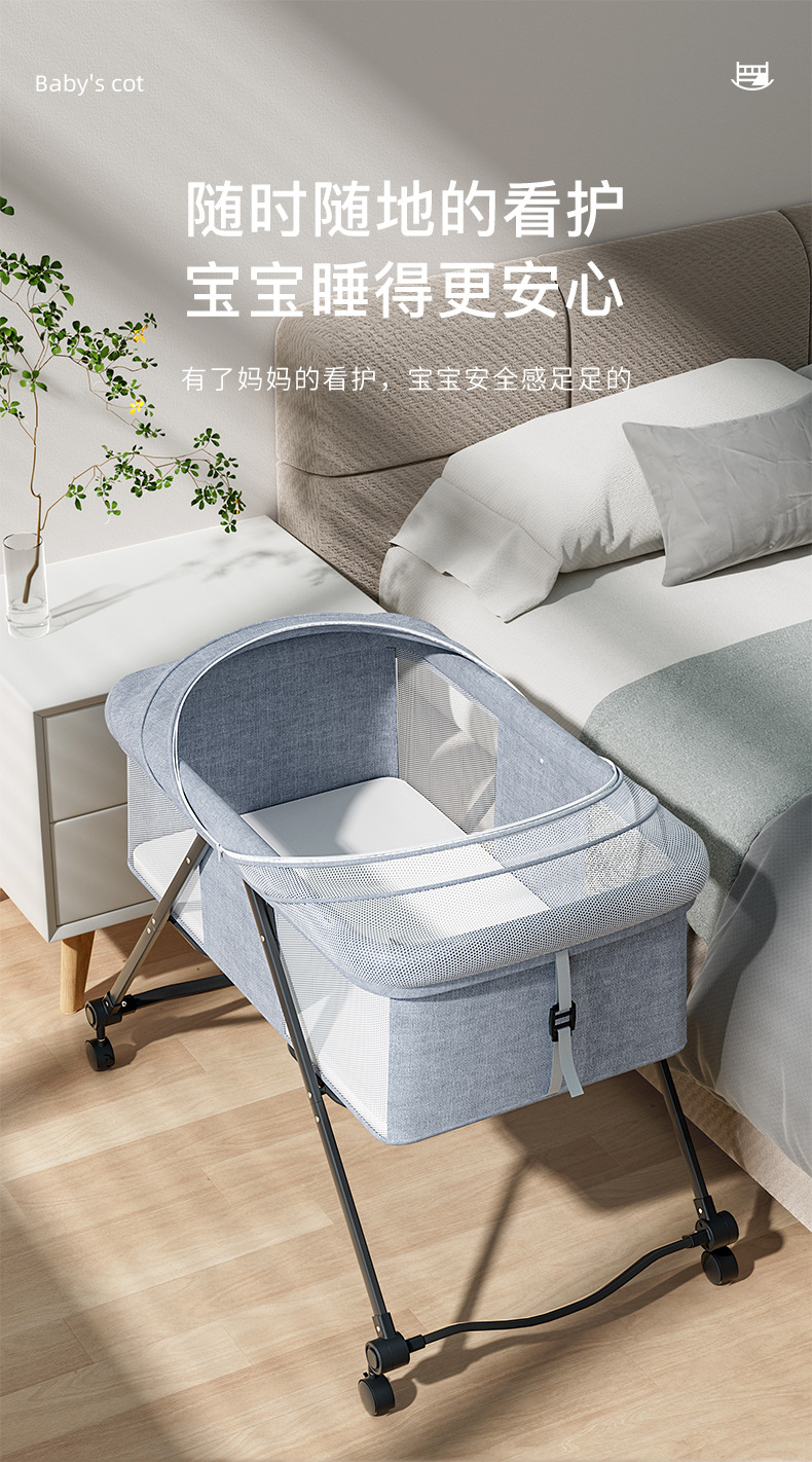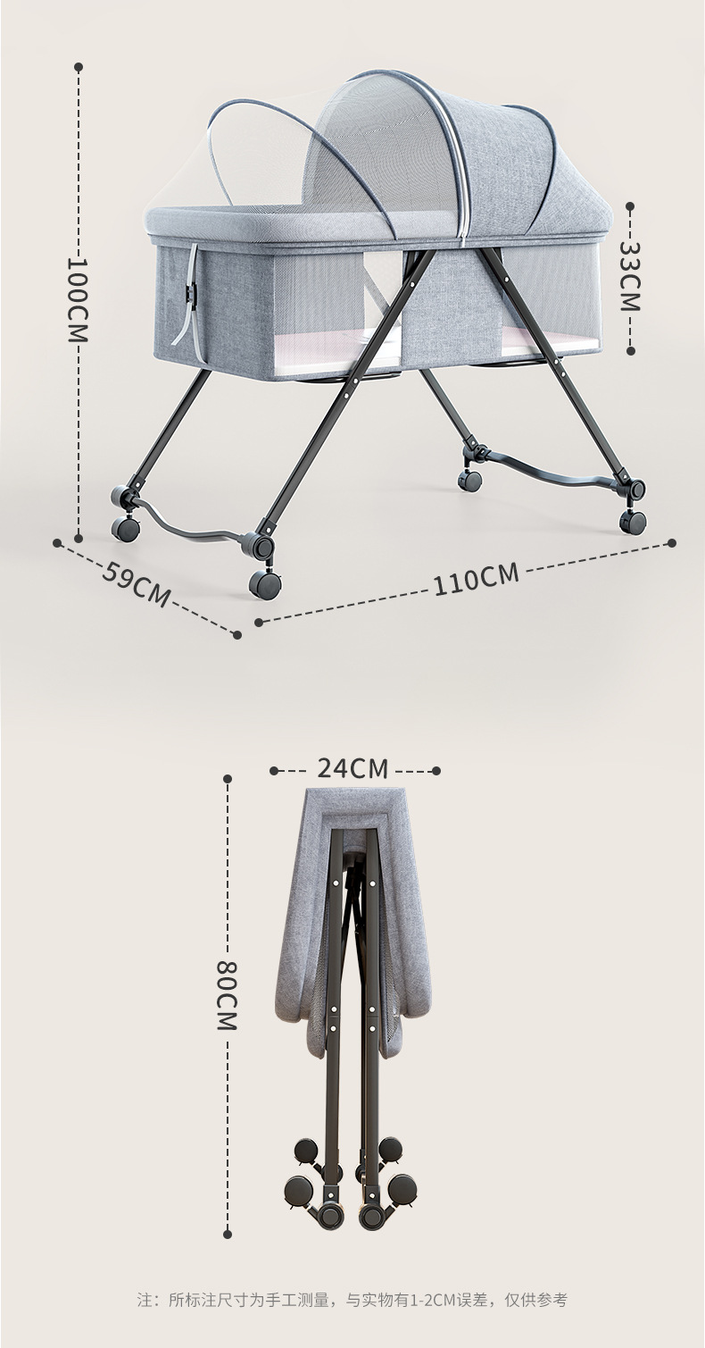 婴儿床便携式可移动可折叠调节bb床防溢奶摇篮宝宝儿童铁质婴儿床