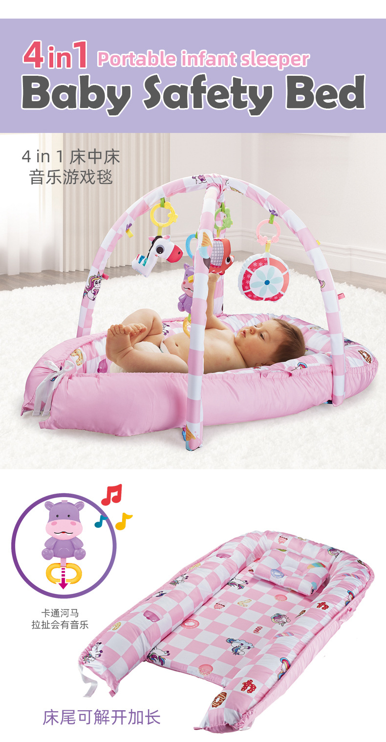 特色功能:安抚摇床,带音乐,四合一游戏毯健身架,早教摇铃