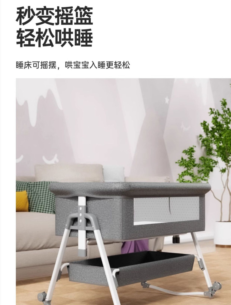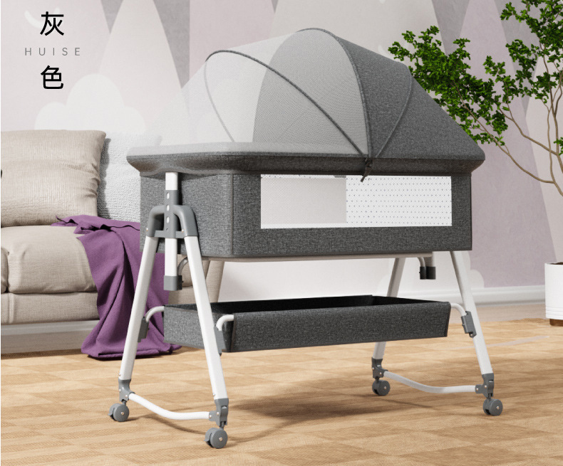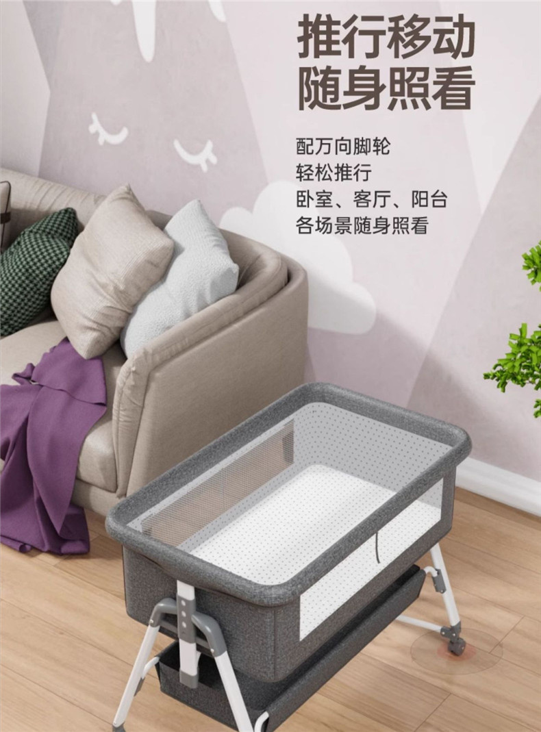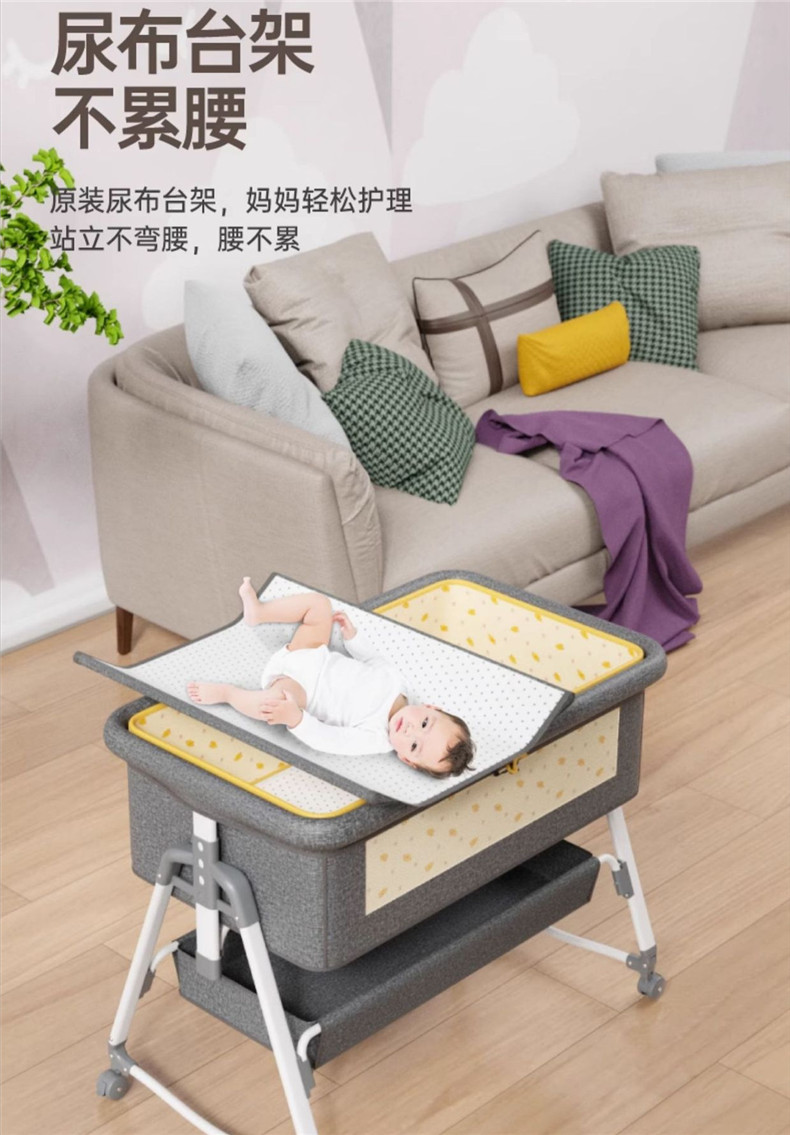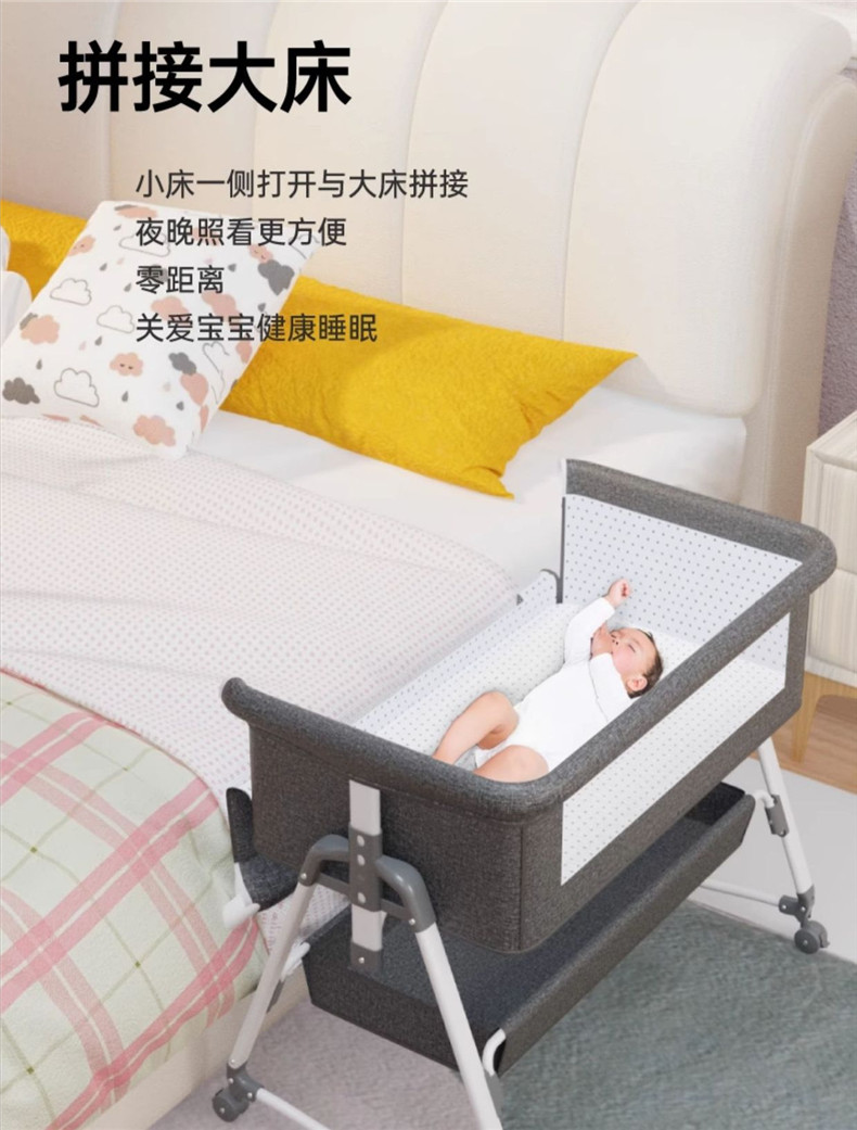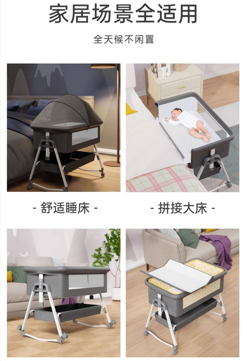 婴儿床可移动便携式摇篮床可折叠可升降多种功能bb床新生儿拼接大床