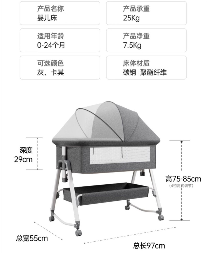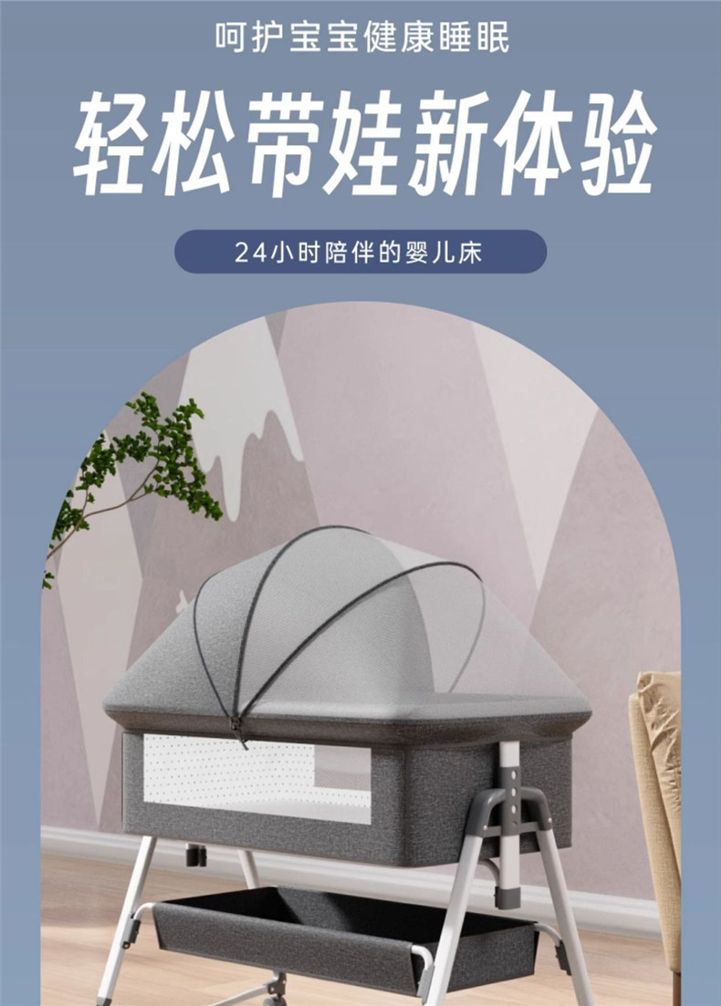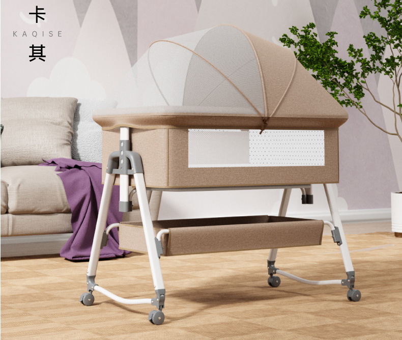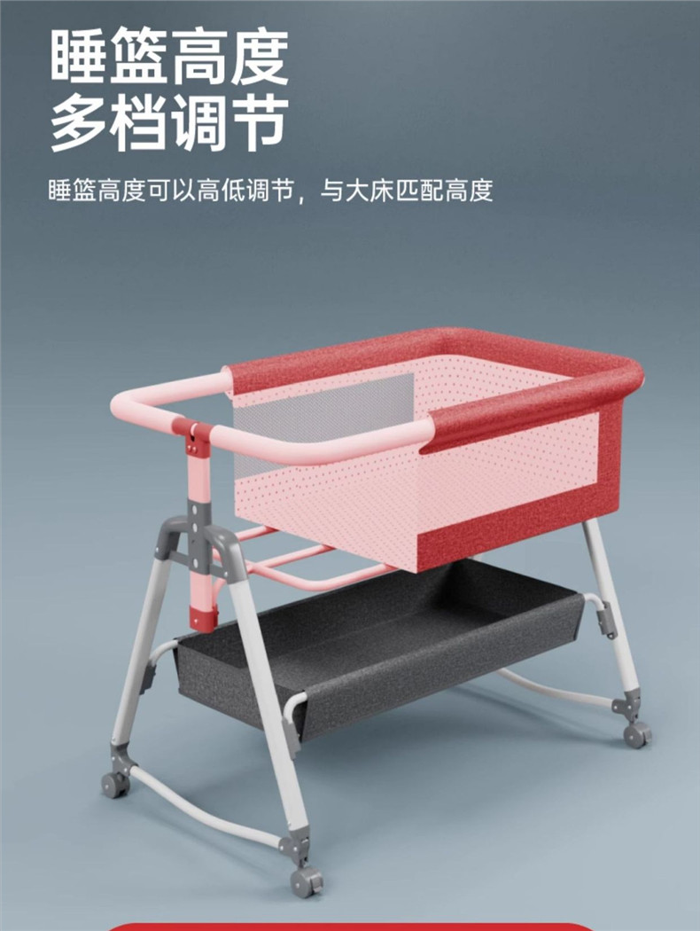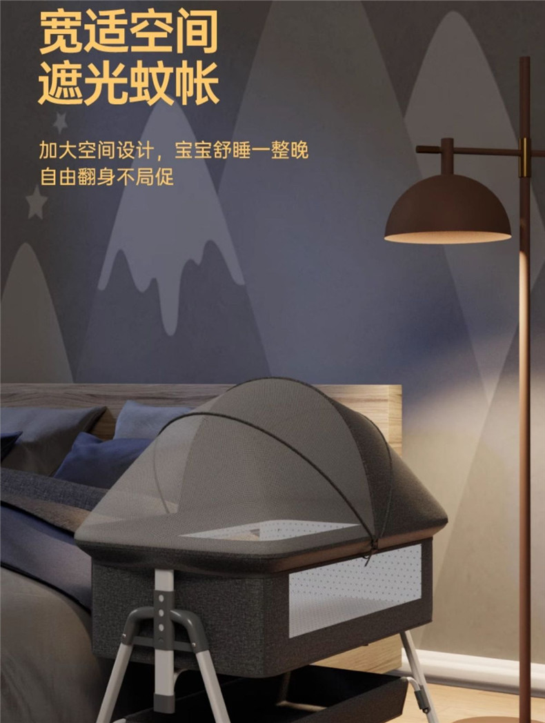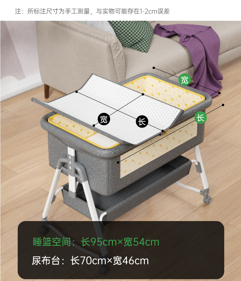 婴儿床可移动便携式摇篮床可折叠可升降多种功能bb床新生儿拼接大床
