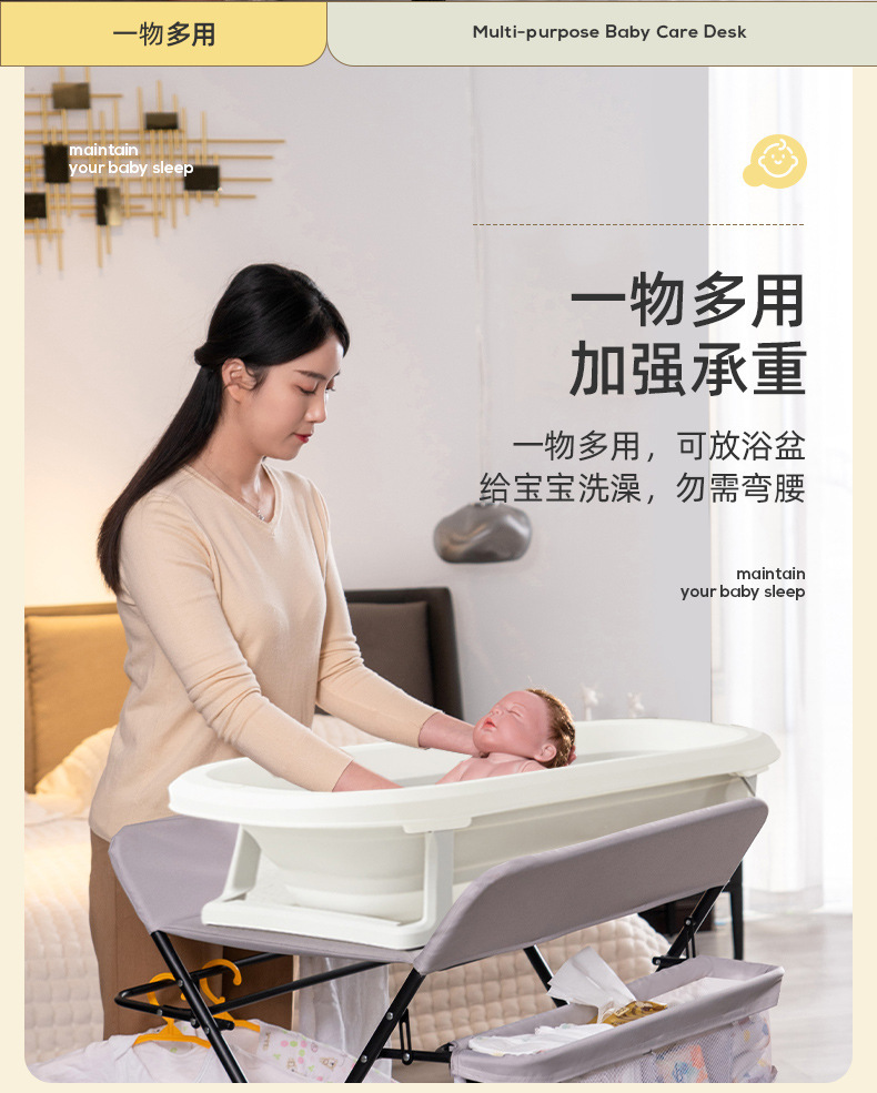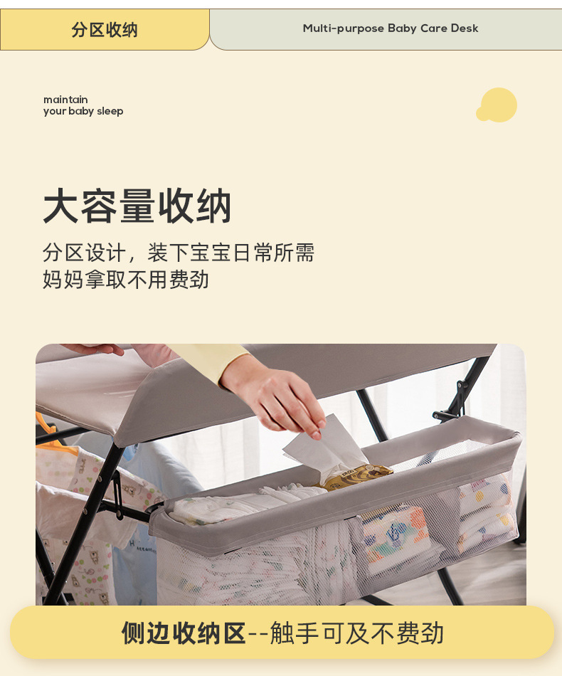 尿布台多种功能婴儿护理台宝宝抚触台新生儿换尿布台可折叠升降高度