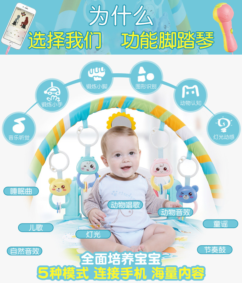 特色功能:音乐哄宝 0-3个月躺着玩 3-6个月趴着玩 7-12个月坐着玩