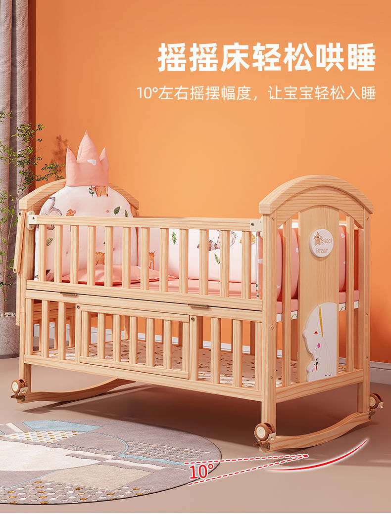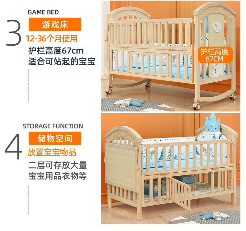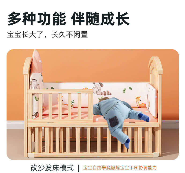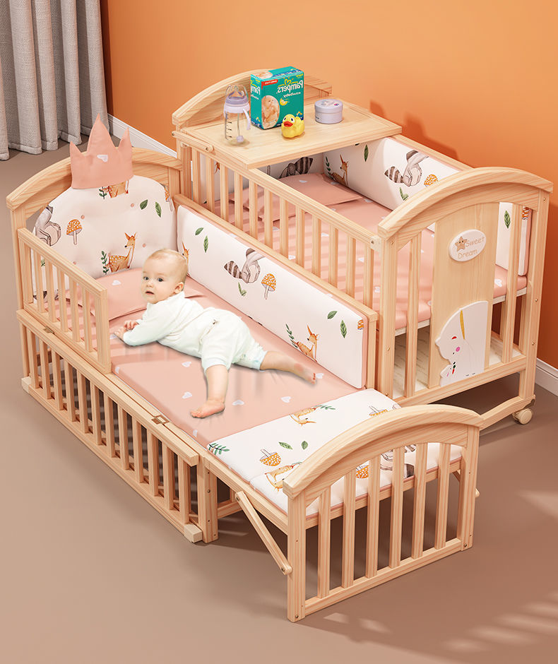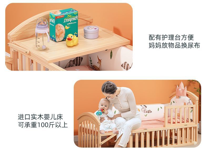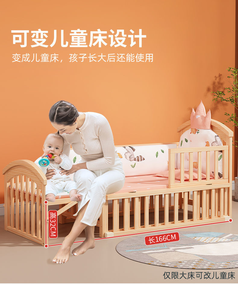 实木无漆婴儿床多种功能新生儿拼接大床BB床儿童床摇篮床宝宝床定制