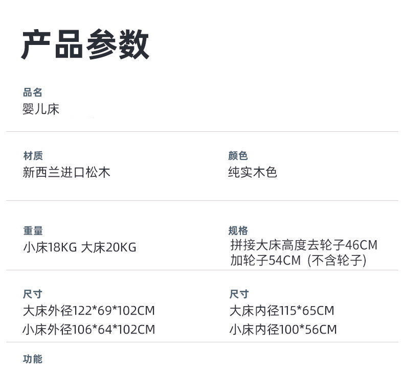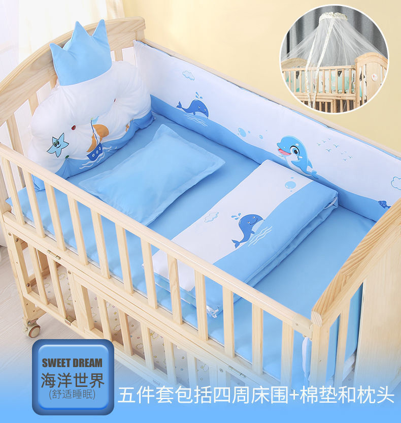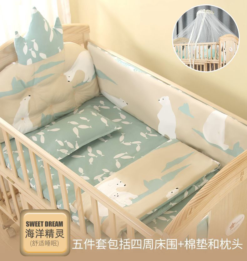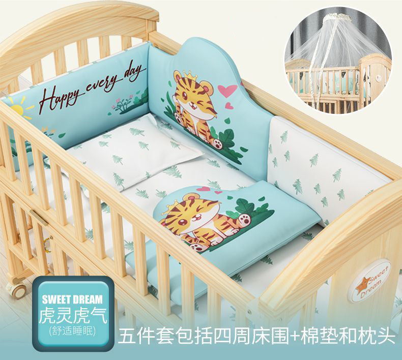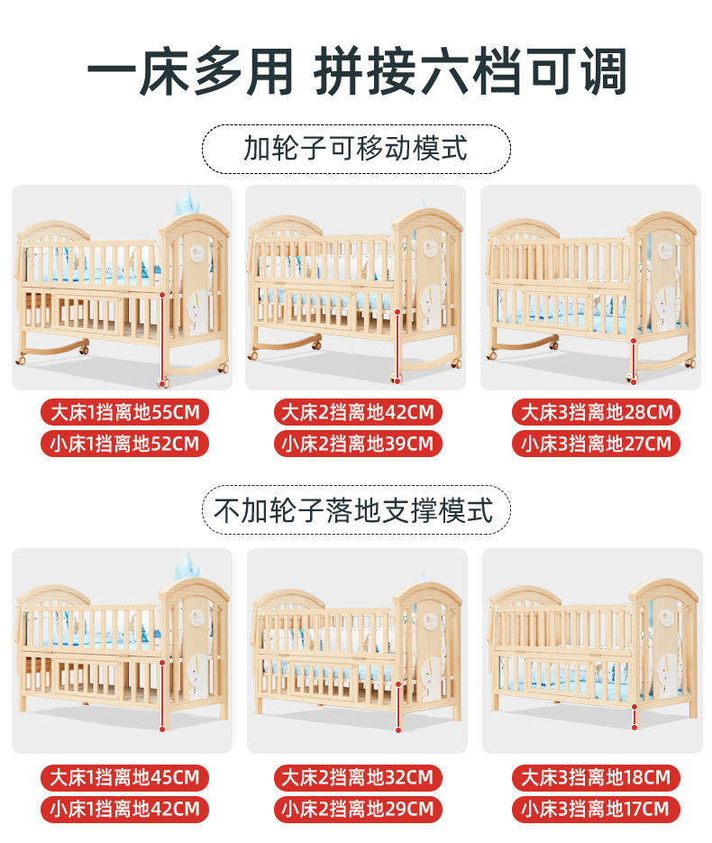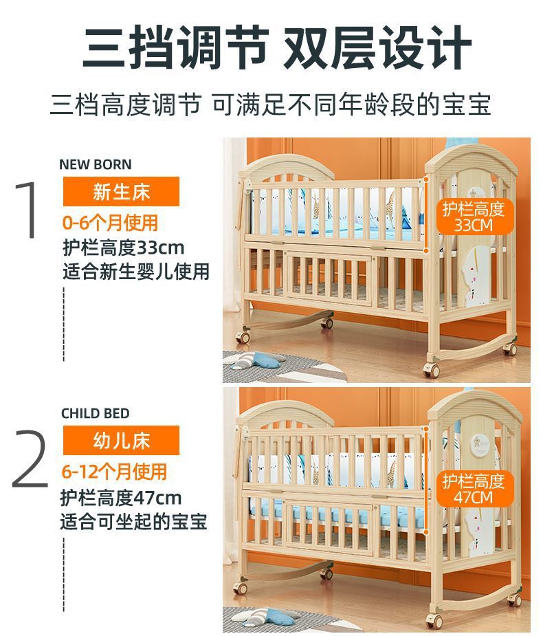 实木无漆婴儿床多种功能新生儿拼接大床BB床儿童床摇篮床宝宝床定制