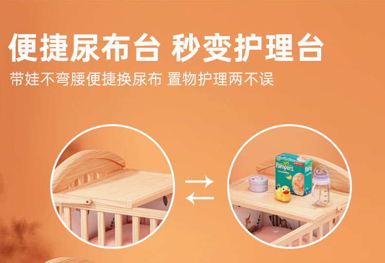 实木婴儿床宝宝床小孩摇篮床婴幼儿床bb床变书桌卧室边床礼品赠送