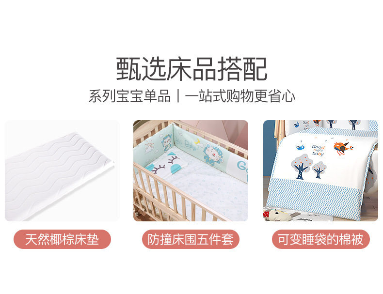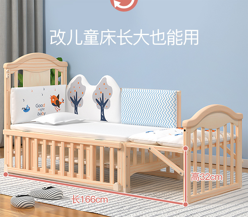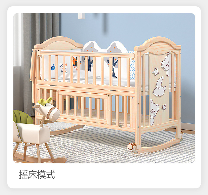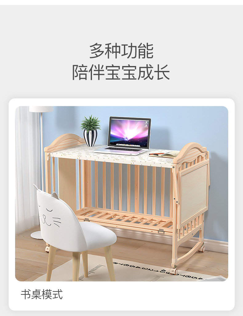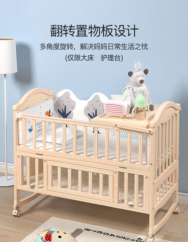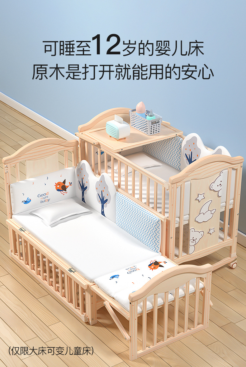侧栏可打开与大床拼接 摇脚可平面落地 可变儿童床 可变便携尿布台/置物架
