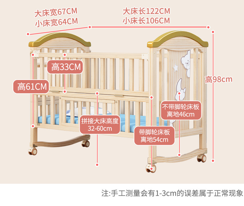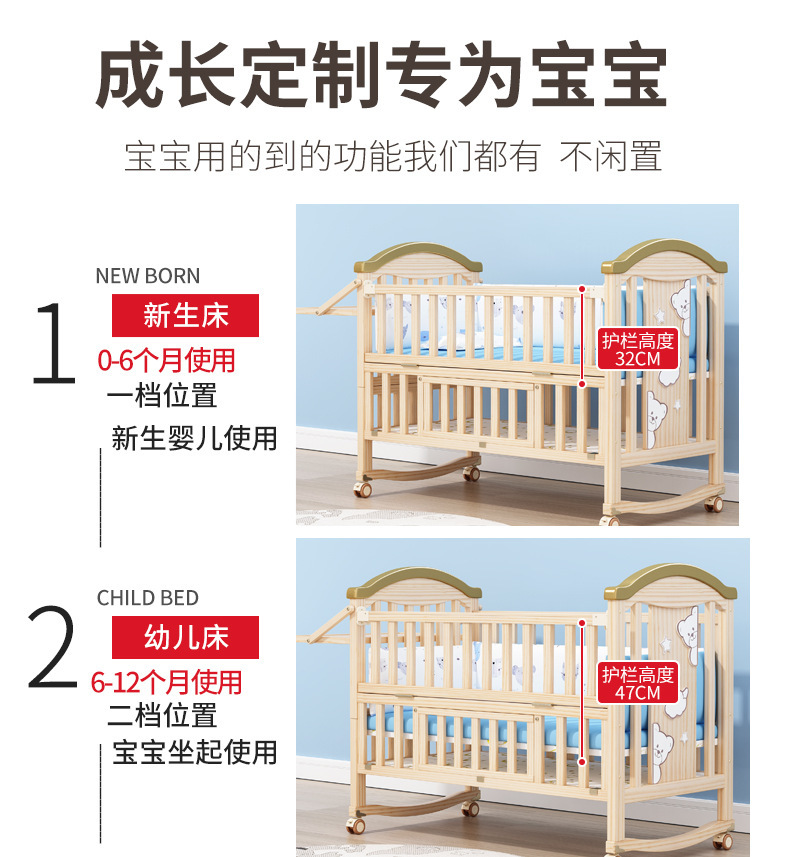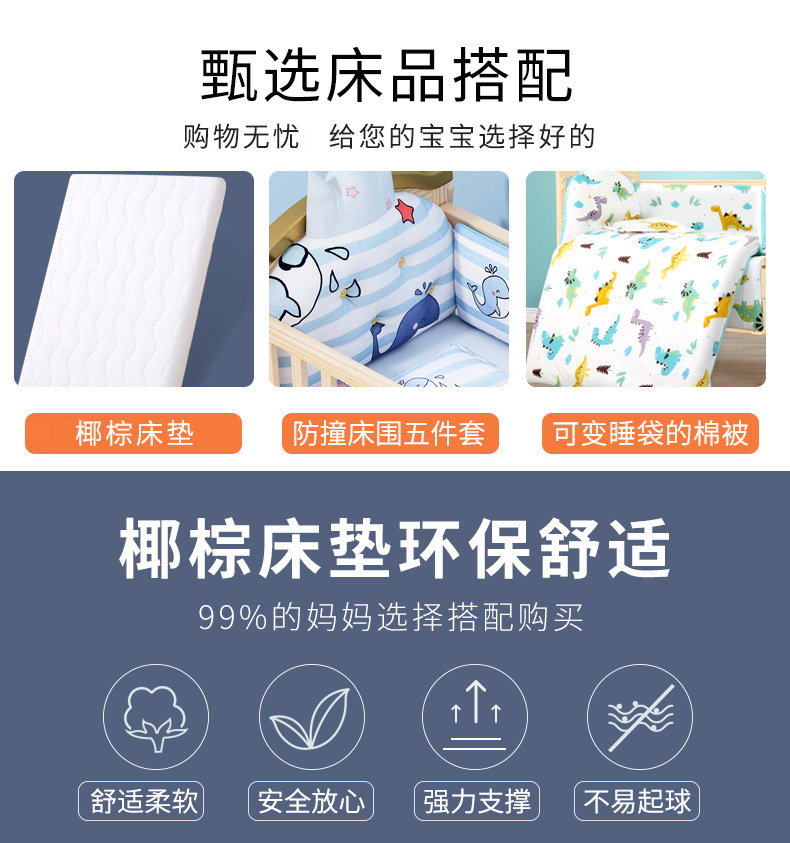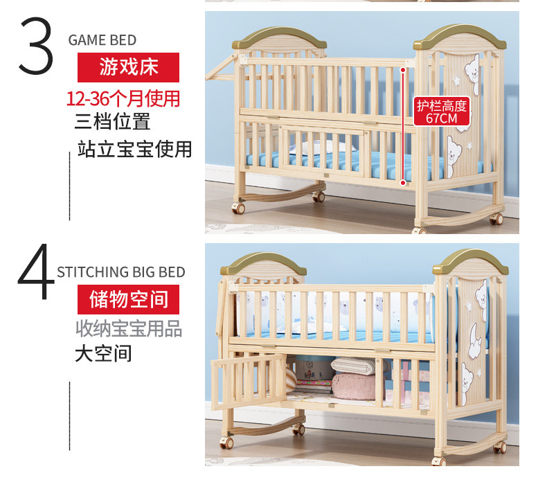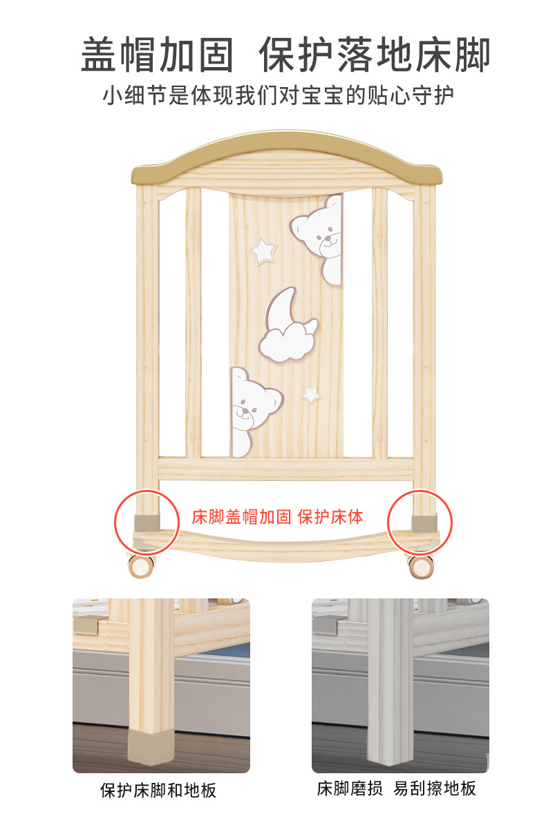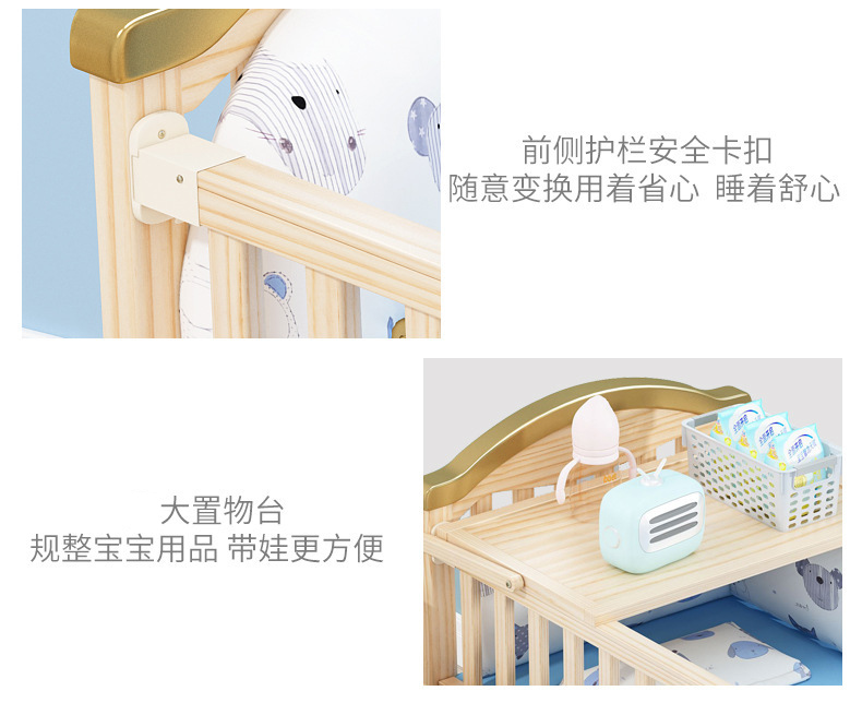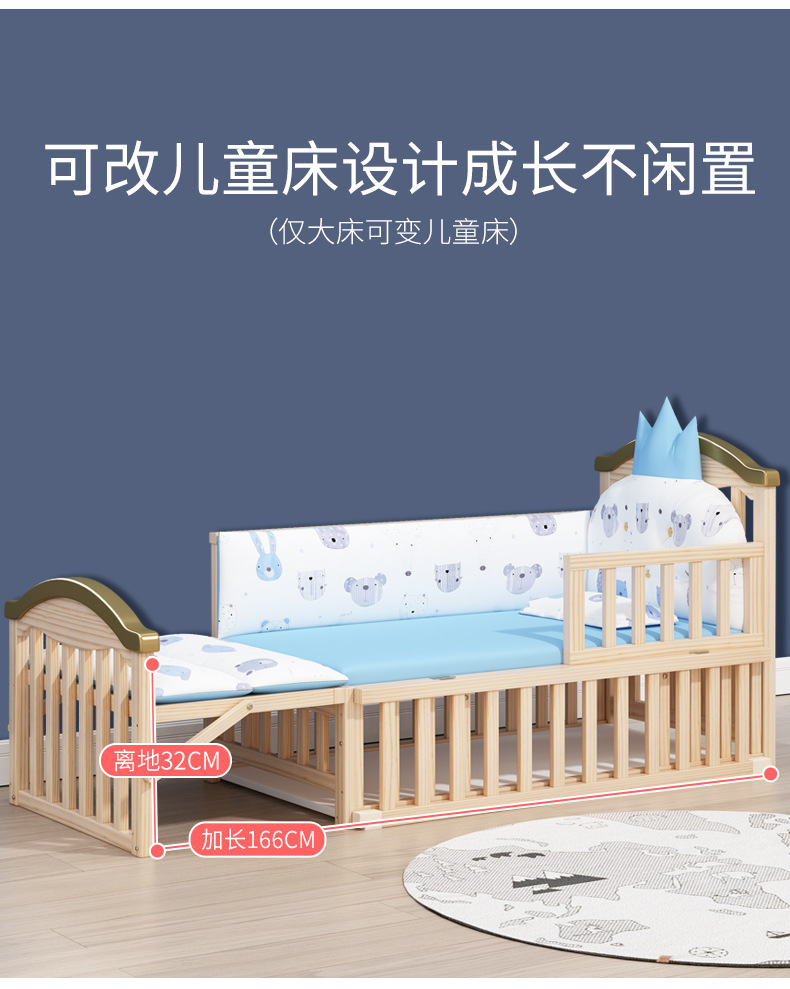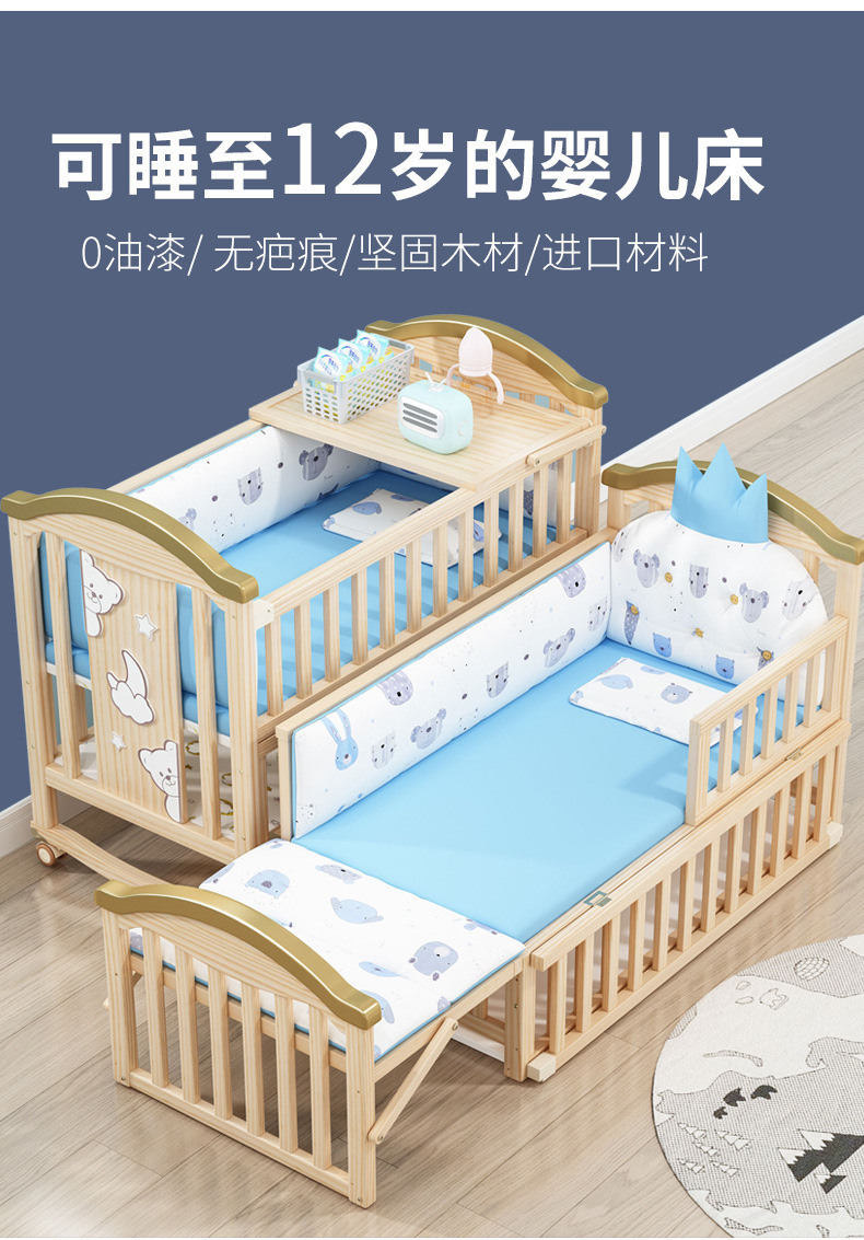 婴儿床 实木无漆宝宝bb摇篮多种功能儿童新生儿可移动 拼接大床