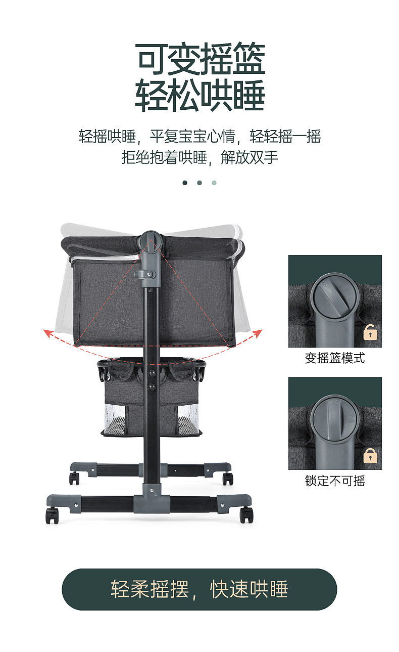 婴儿床可移动便携式摇篮床可折叠可升降多种功能bb床新生儿拼接大床