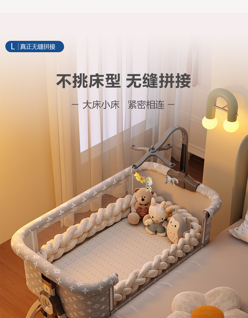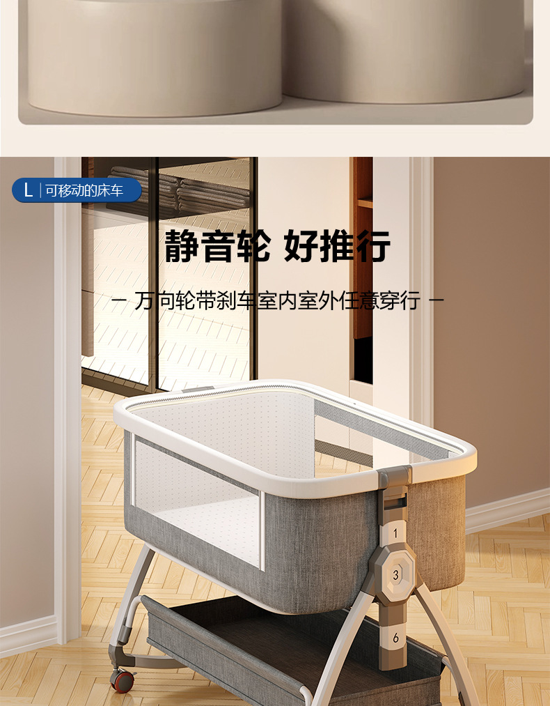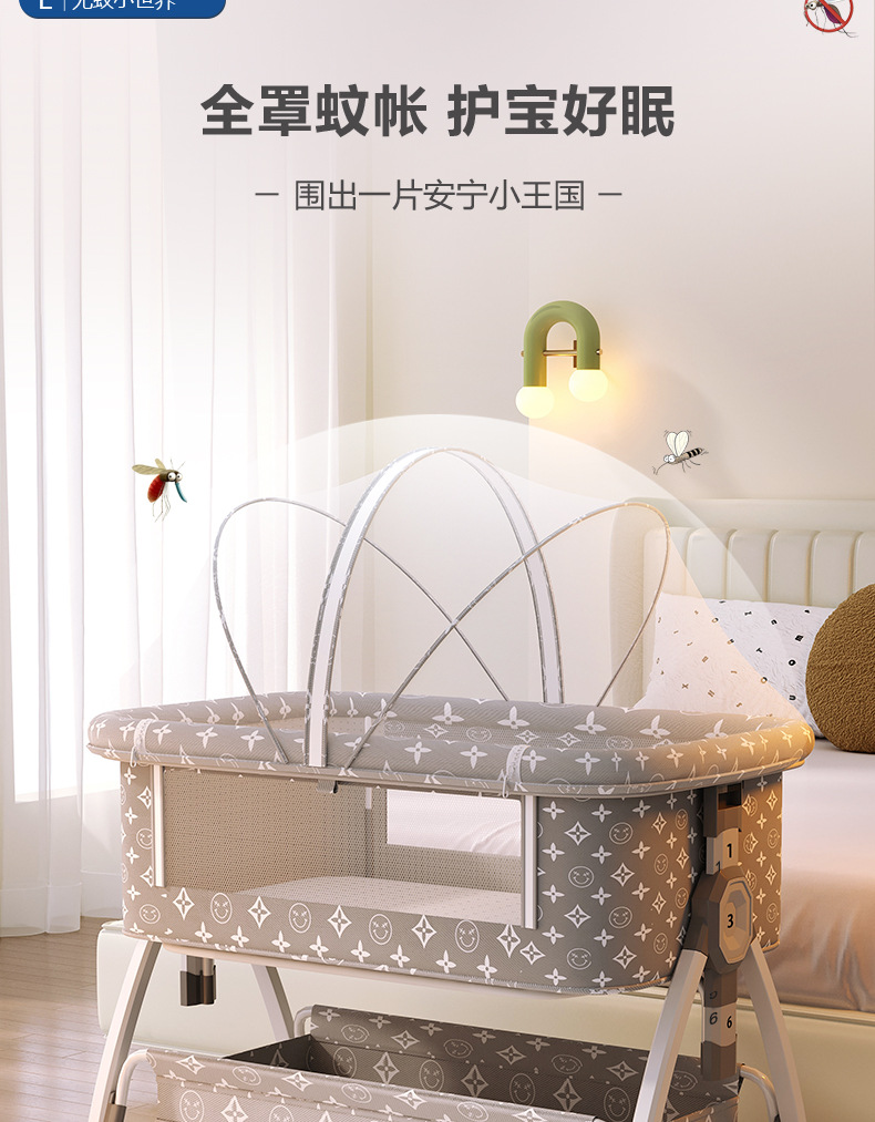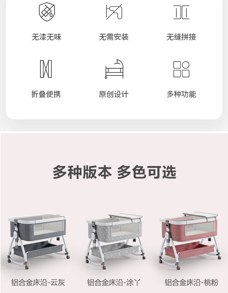 便携式可移动婴儿床可折叠高低调节拼接大床宝宝摇篮床bb床防溢奶