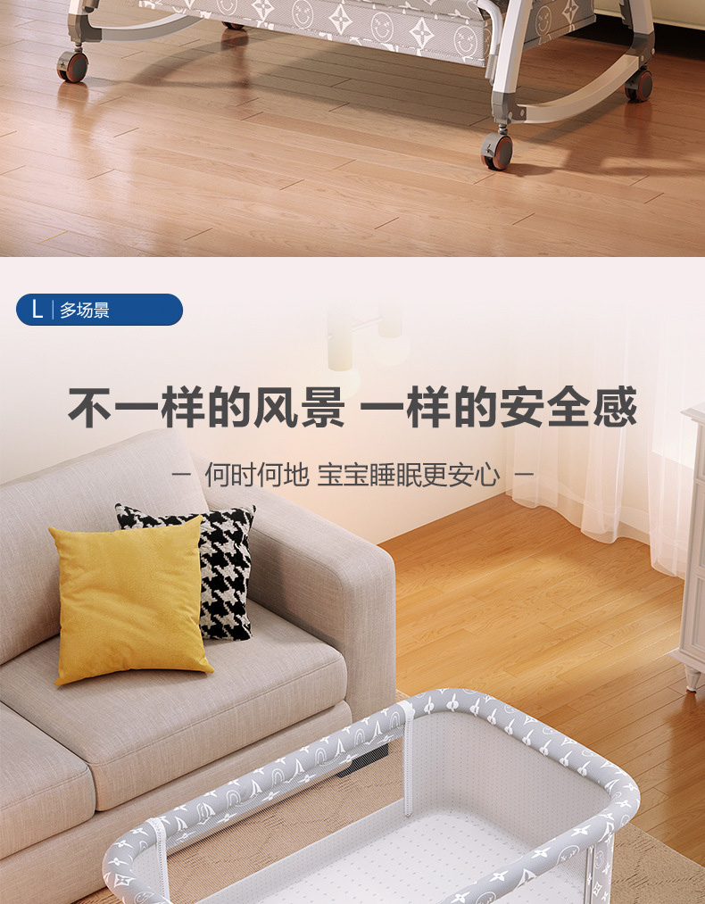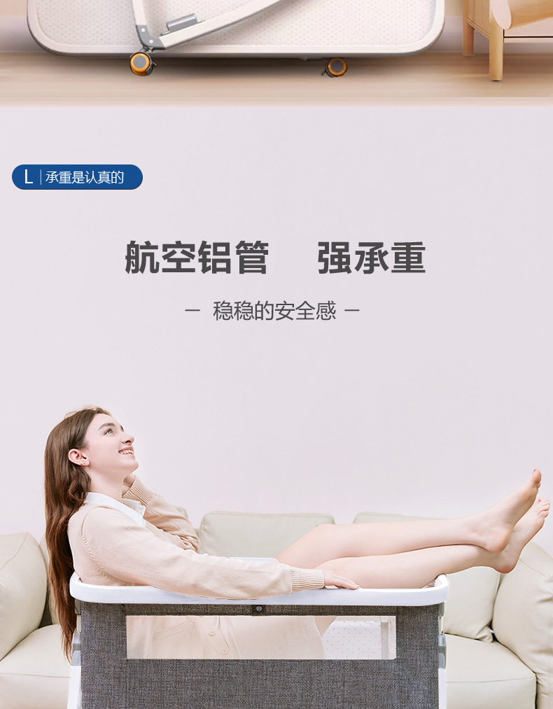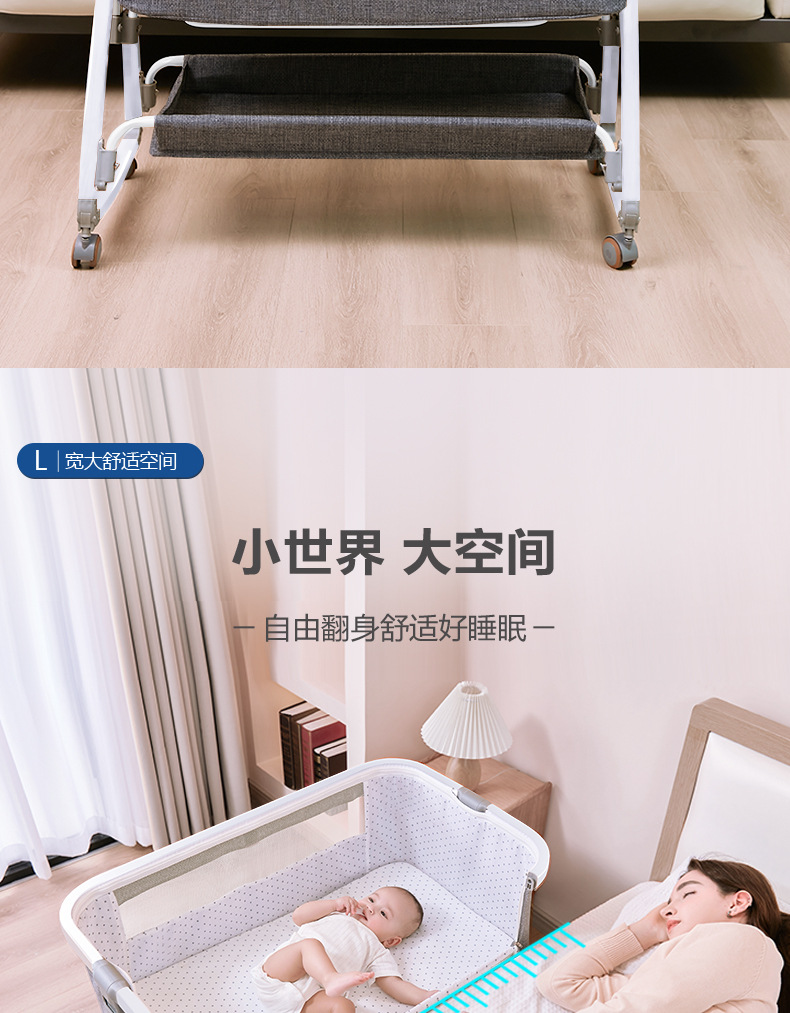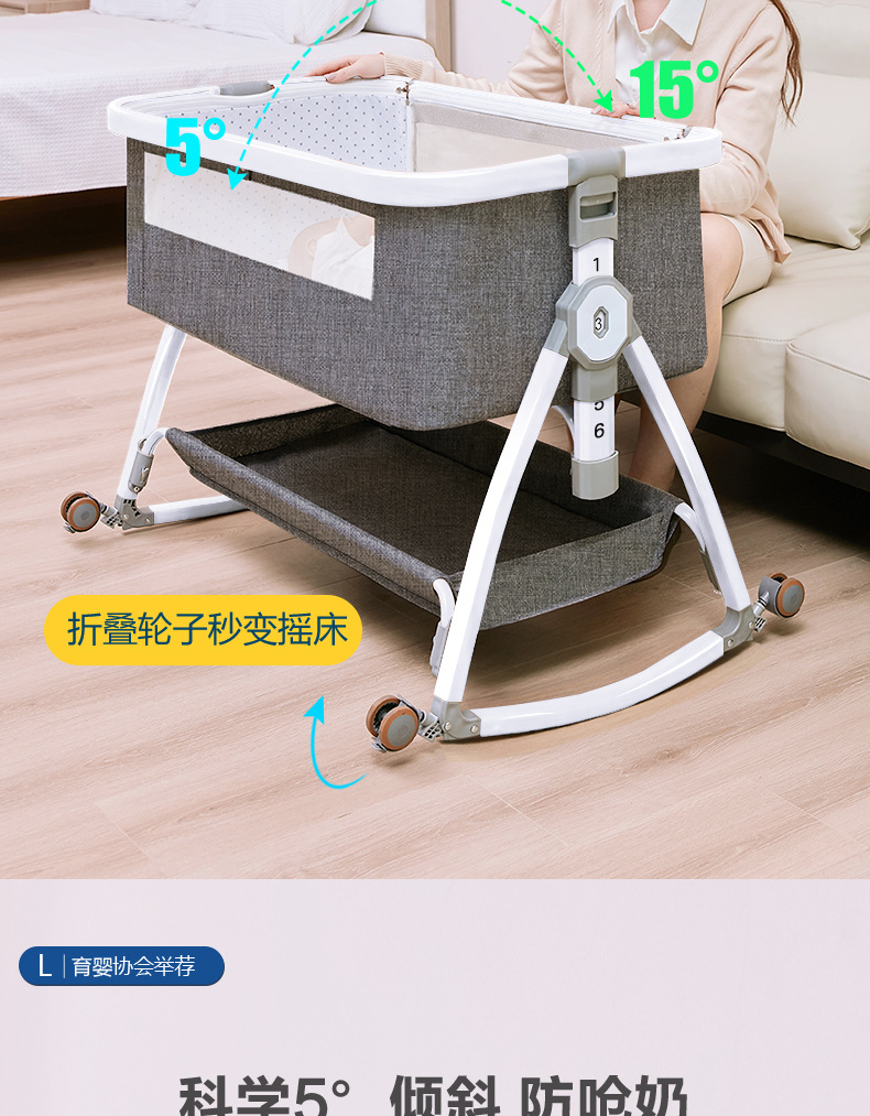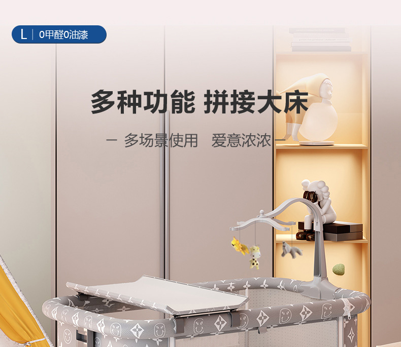 便携式可移动婴儿床可折叠高低调节拼接大床宝宝摇篮床bb床防溢奶