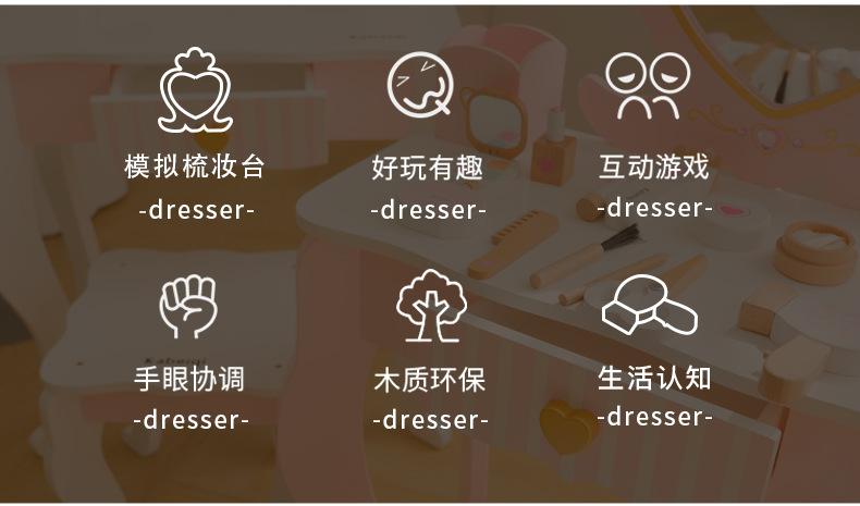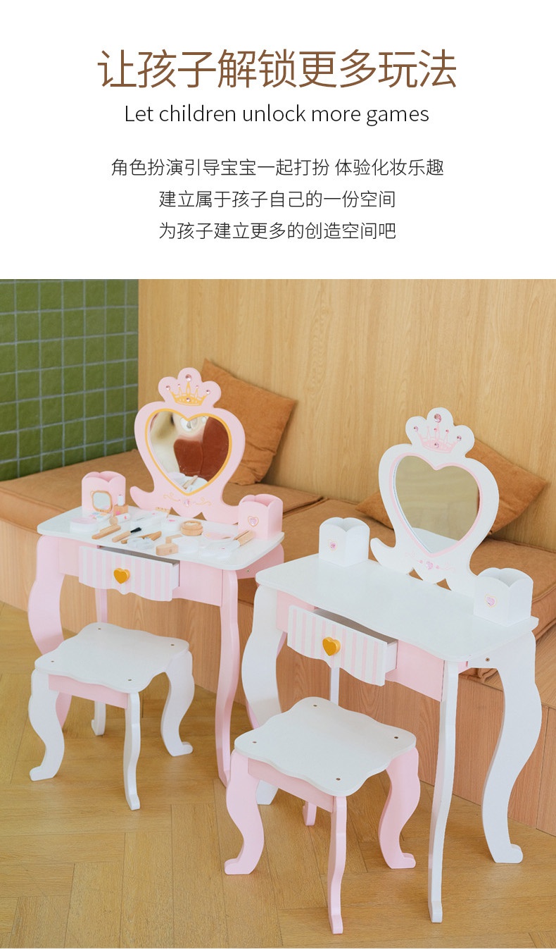 儿童木质梳妆台女孩公主化妆品玩具套装首饰盒过家家生日周岁礼物