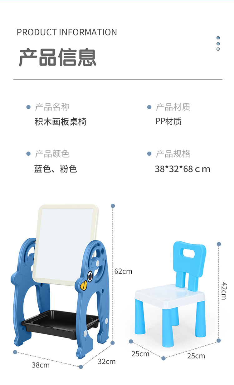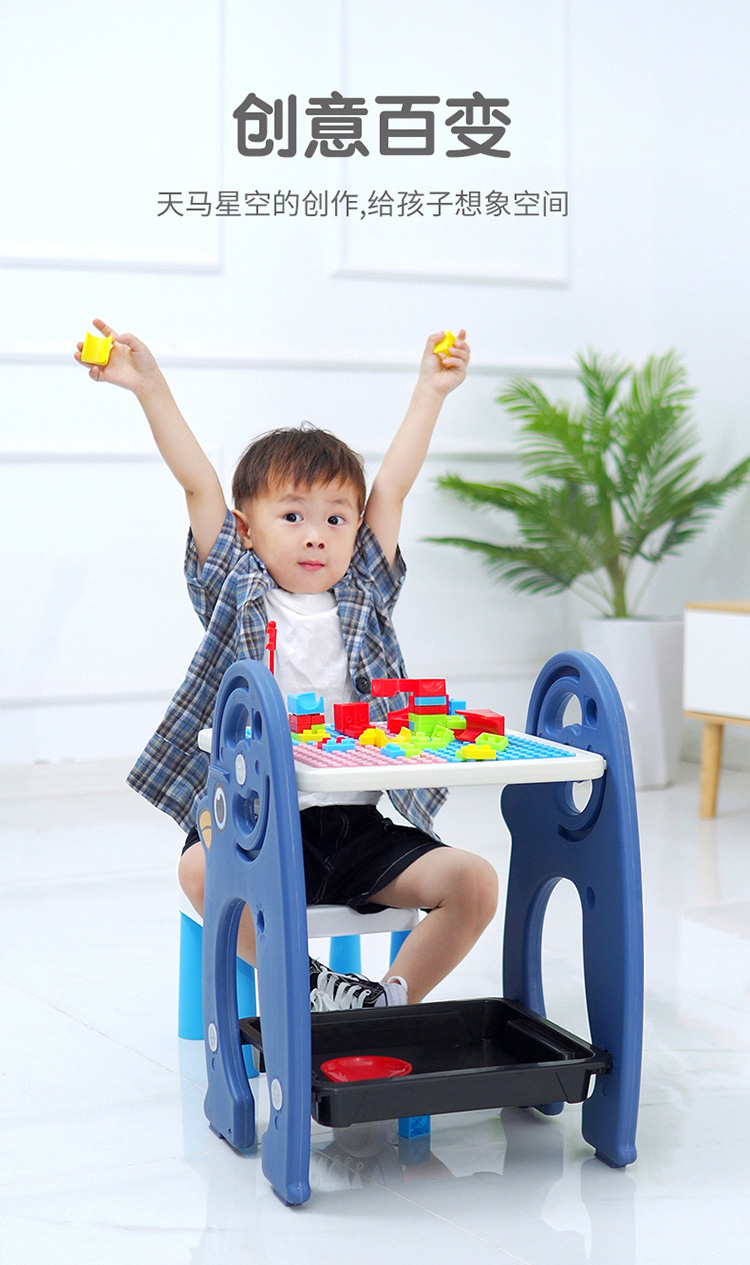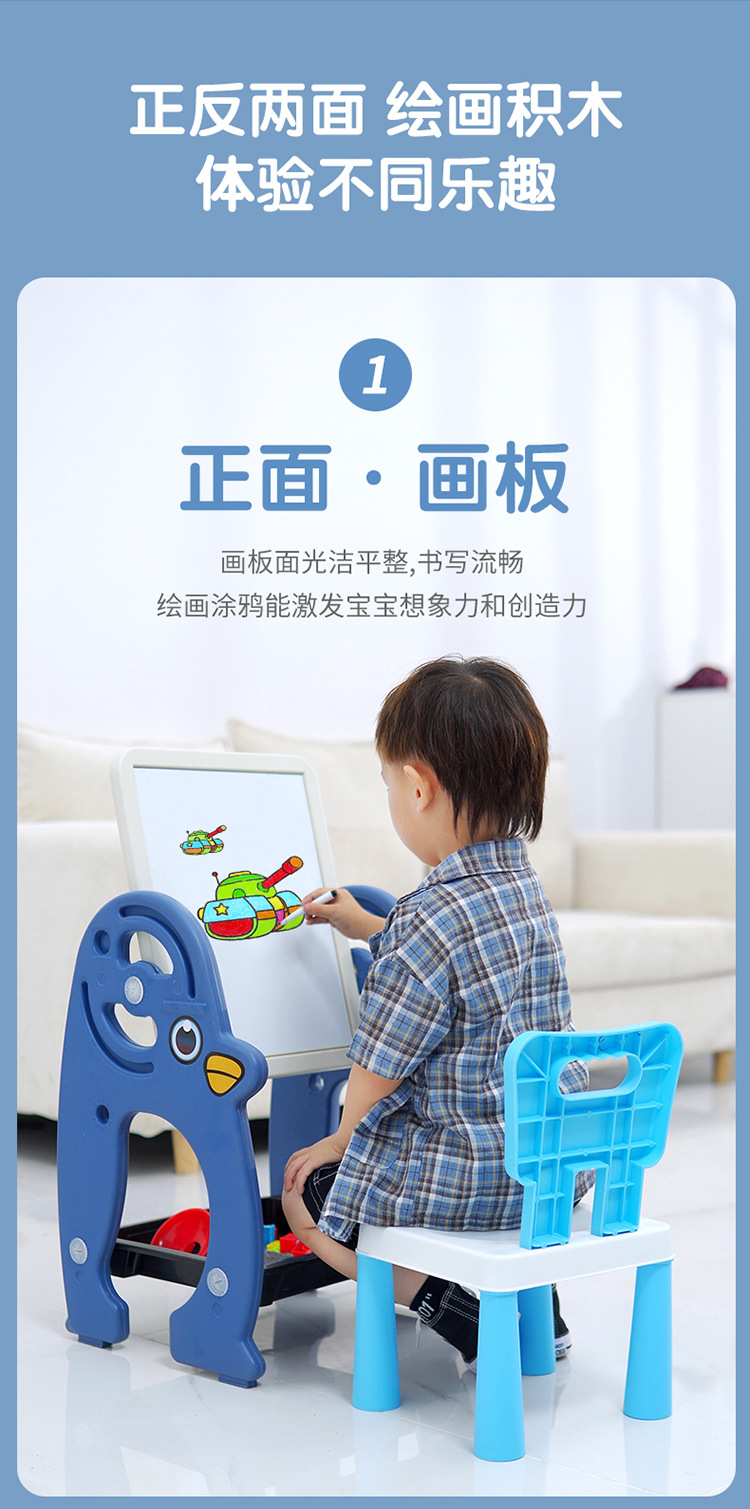 儿童积木桌磁性画板桌二合一架式彩色积木画板写字学习桌宝宝玩具