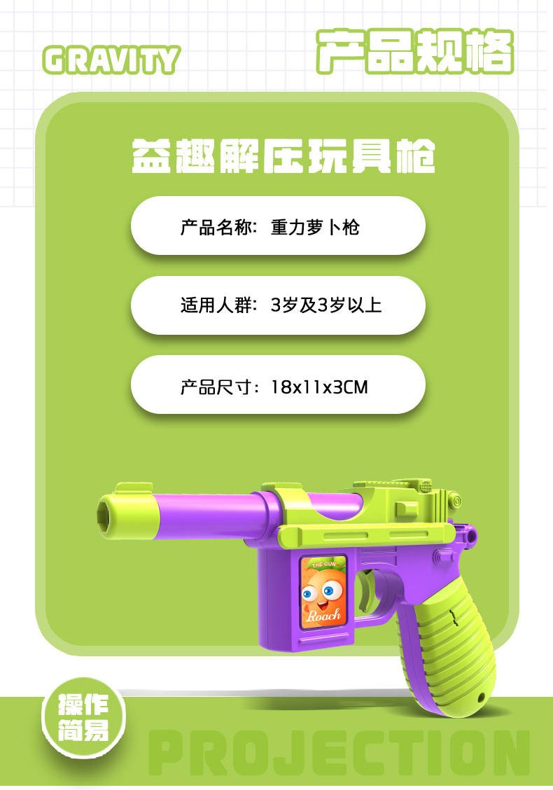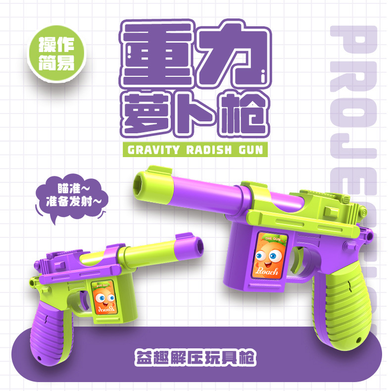 重力萝卜枪玩具灵活回弹迷你手枪道具儿童玩具枪解压玩具
