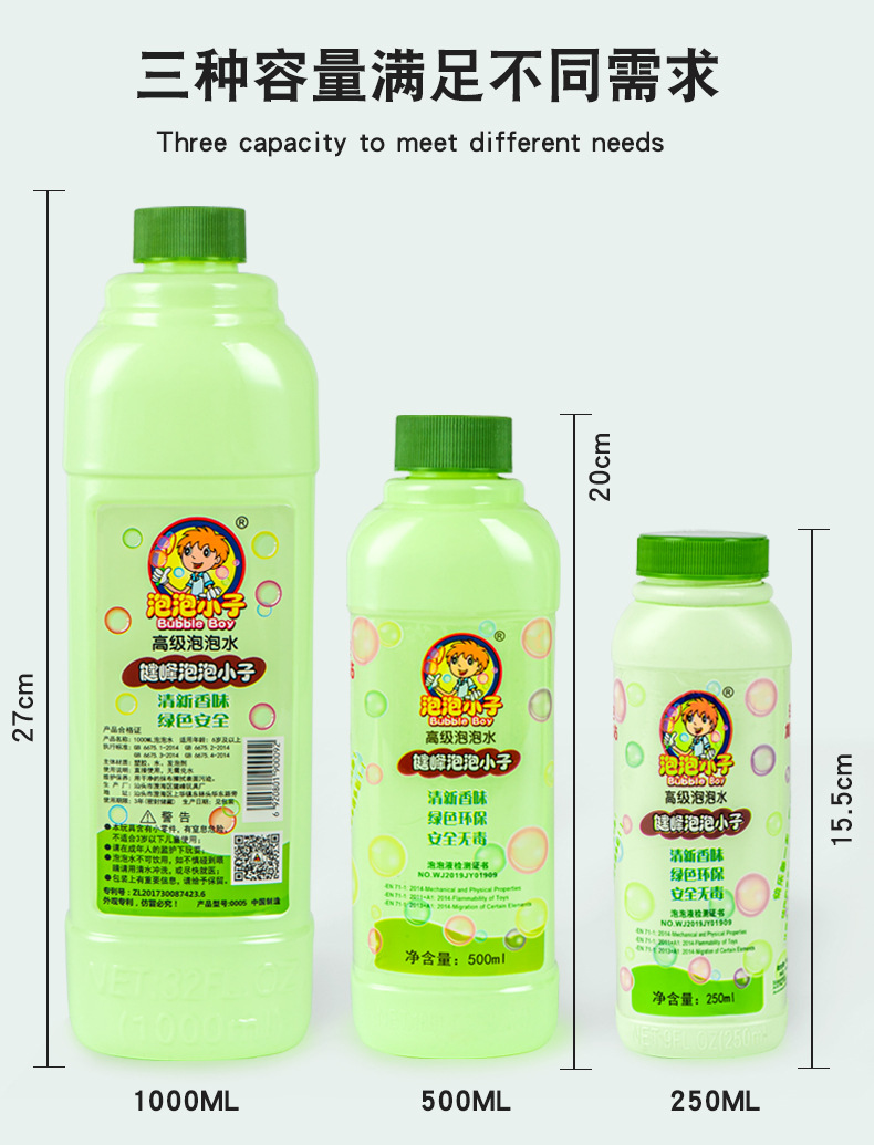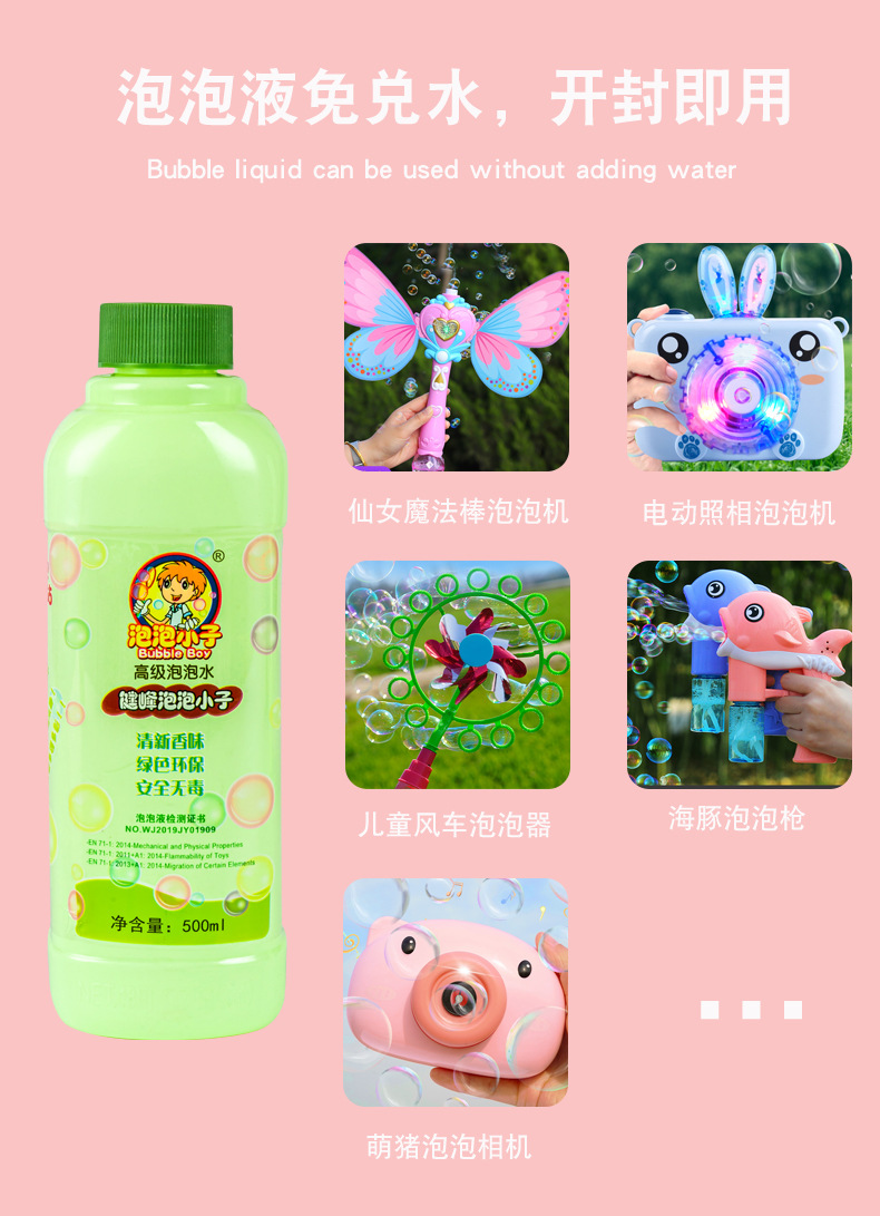 泡泡水补充液1000ml瓶装 儿童泡泡枪泡泡棒泡泡剑 500ml泡泡液