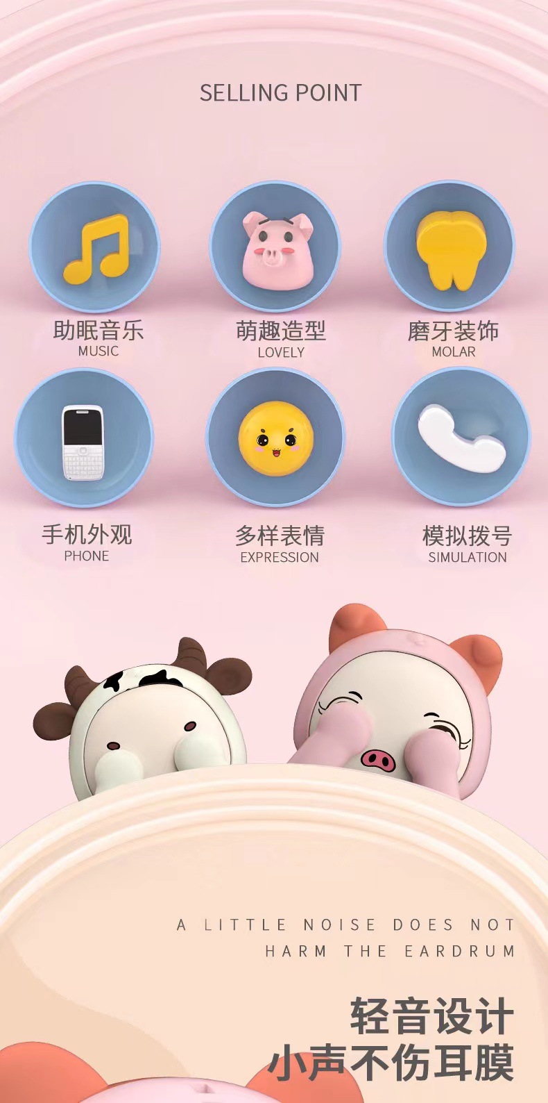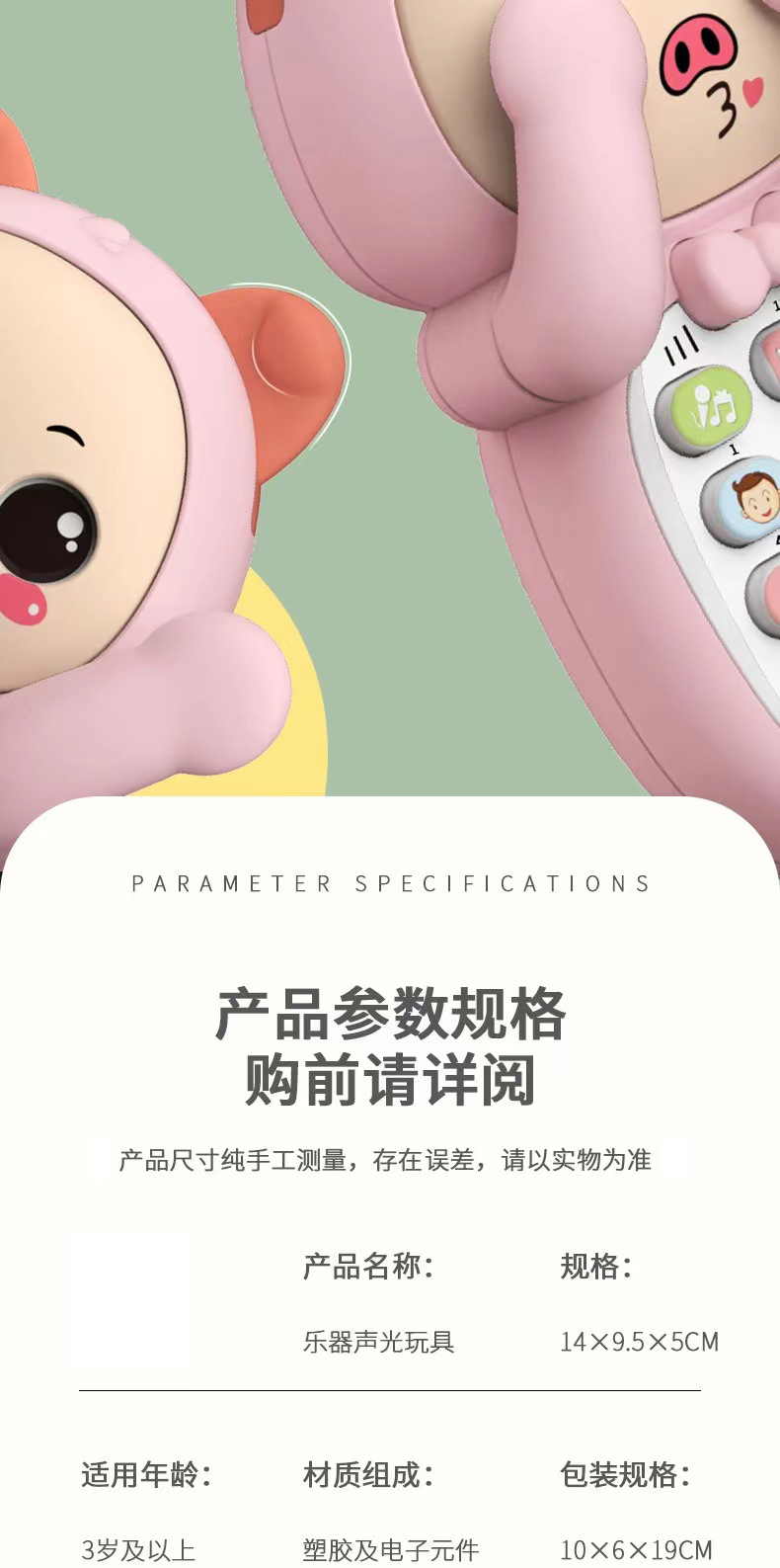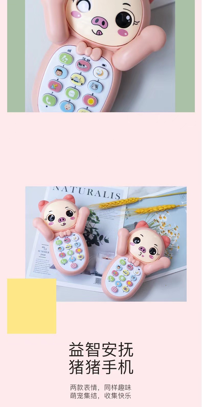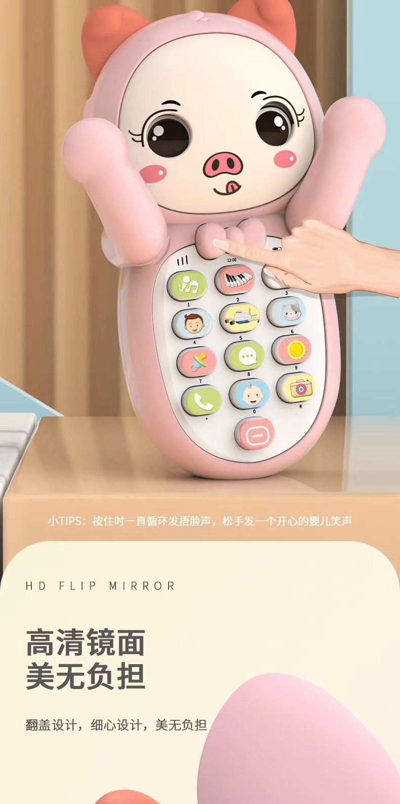 婴儿早教儿童卡通变脸小猪仿真手机可咬音乐故事电话机益智玩具