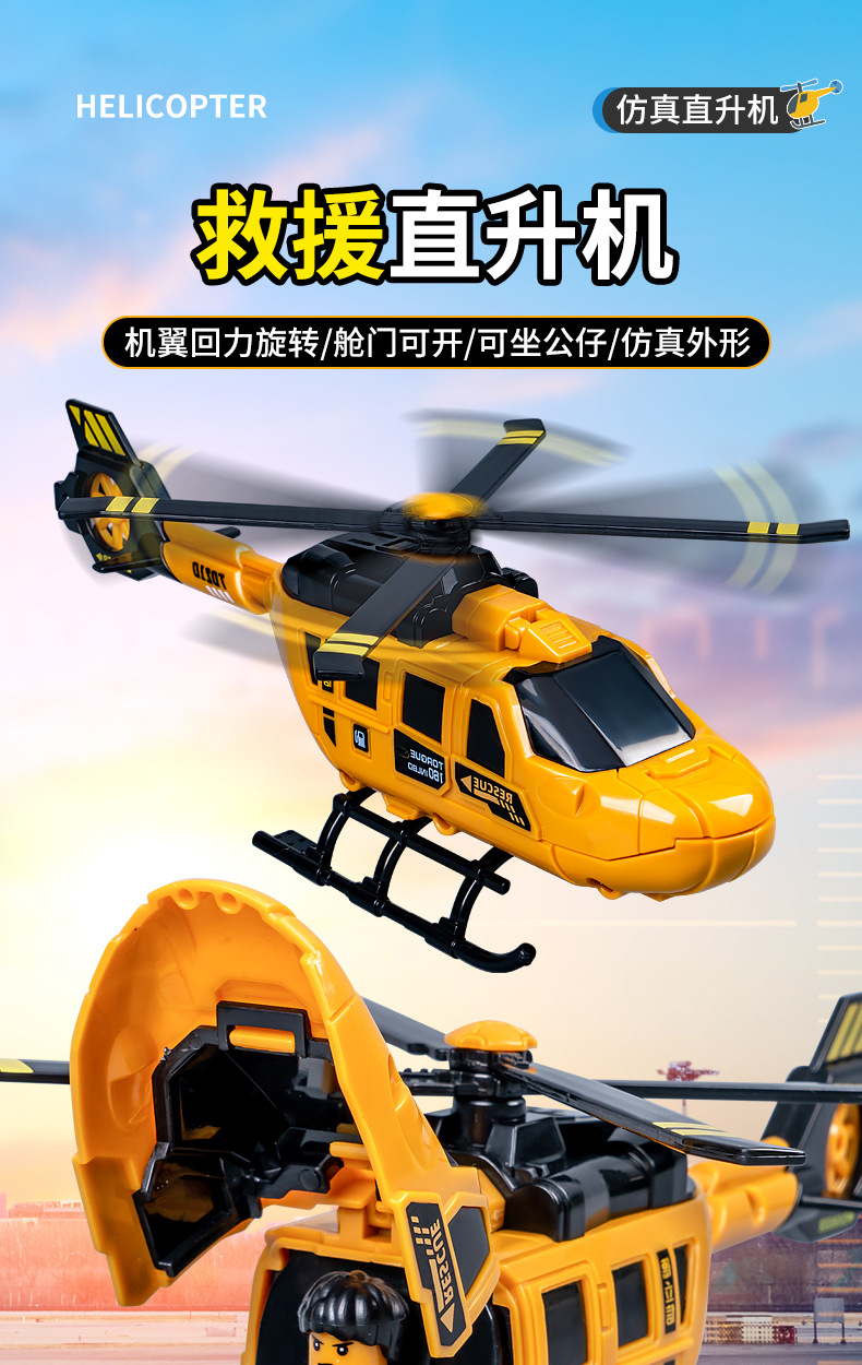 仿真救援直升机惯性螺旋桨飞机模型幼儿园礼品儿童小玩具摆摊
