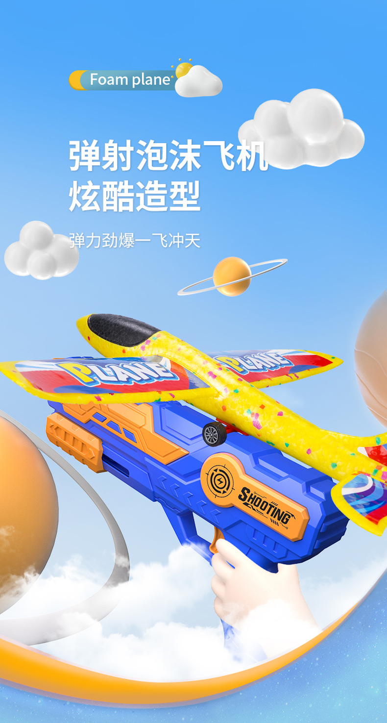 儿童弹射泡沫飞机发射器男孩女孩飞机枪玩具公园地摊