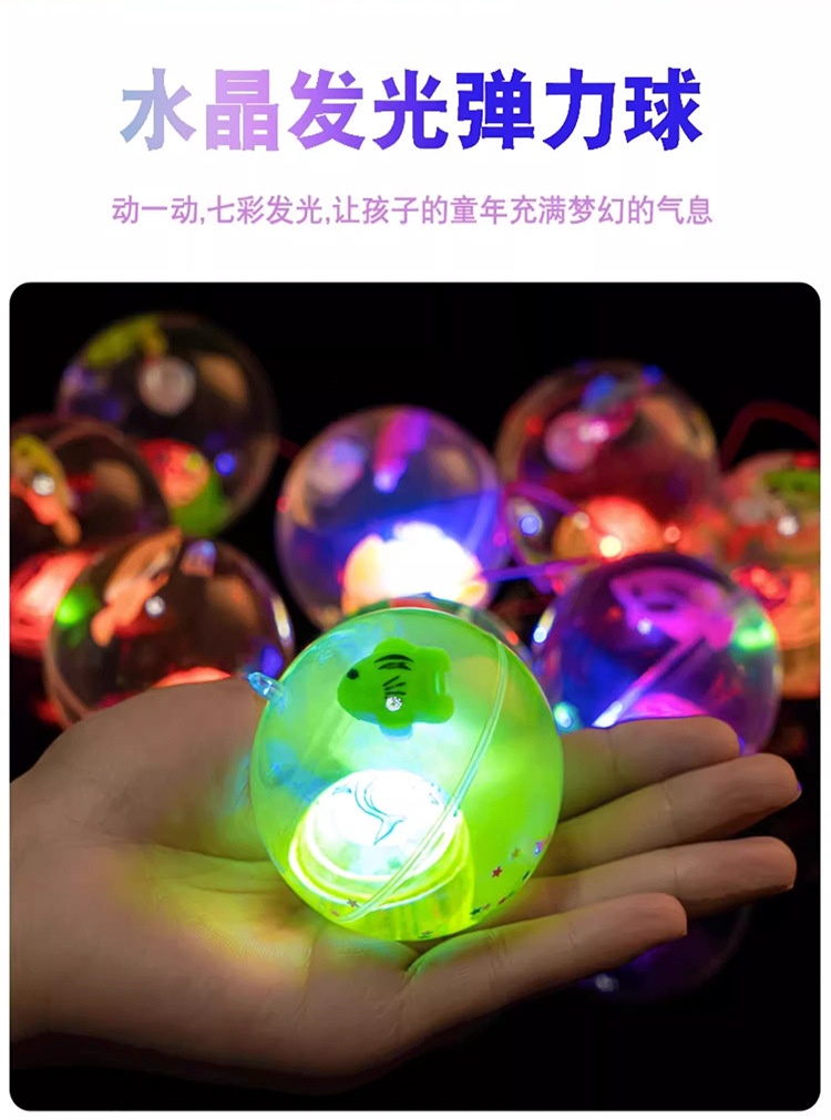 弹跳闪光水晶球七彩跳跳球 闪光儿童玩具礼物 地摊货源摆件