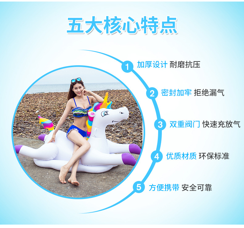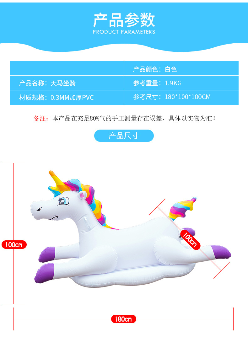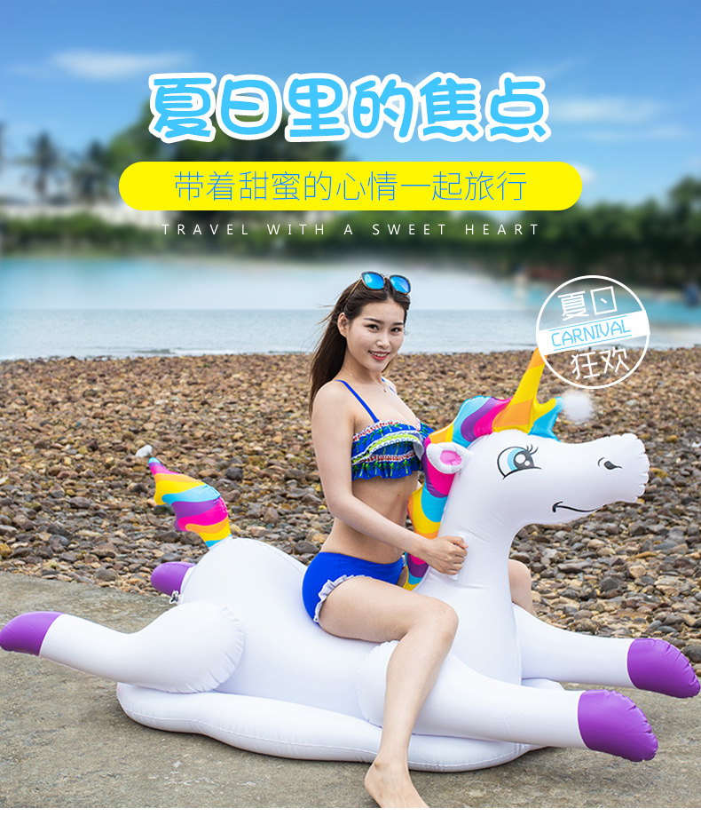 独角兽坐骑 PVC充气 彩马浮排浮床成人儿童充气水上游泳坐骑