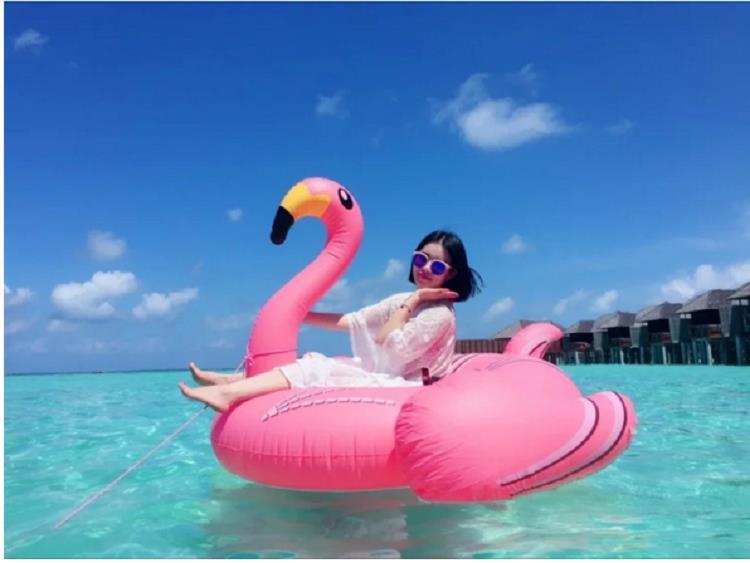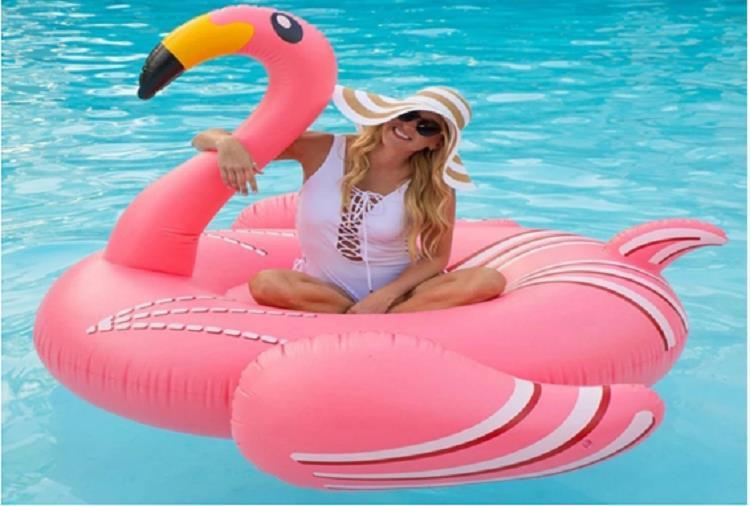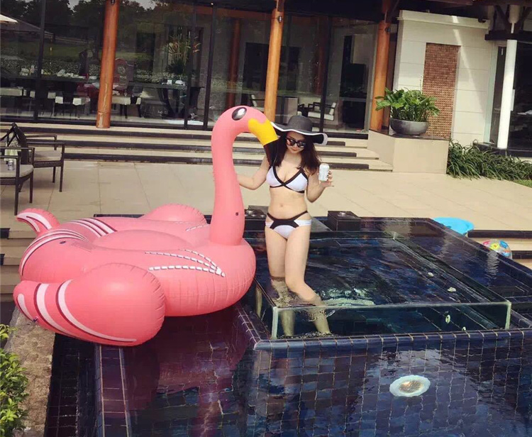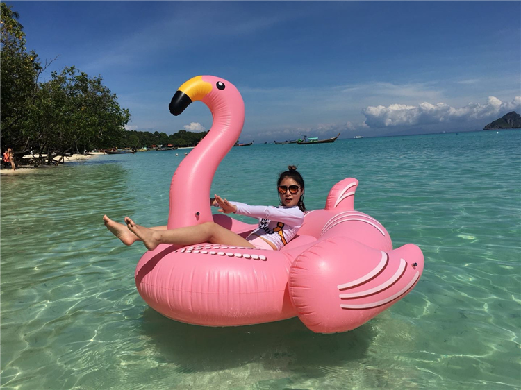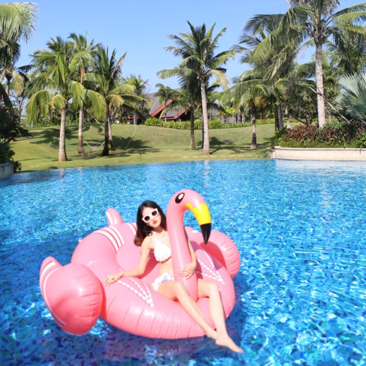 190CM黄嘴火烈鸟坐骑细脖子火烈鸟坐骑浮床浮排粉天鹅泳圈漂浮垫
