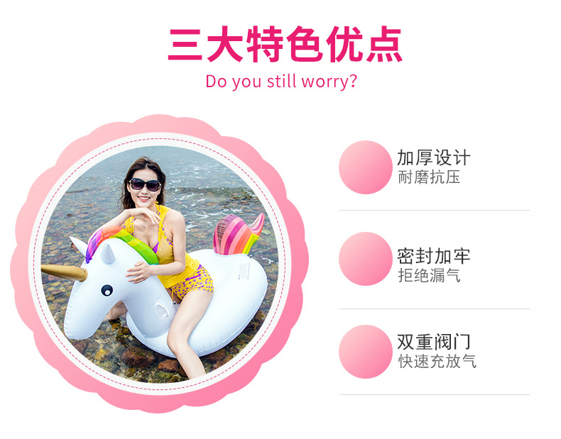 现货直供大小号充气独角兽浮排坐骑PVC水上戏水玩具成人浮床游泳