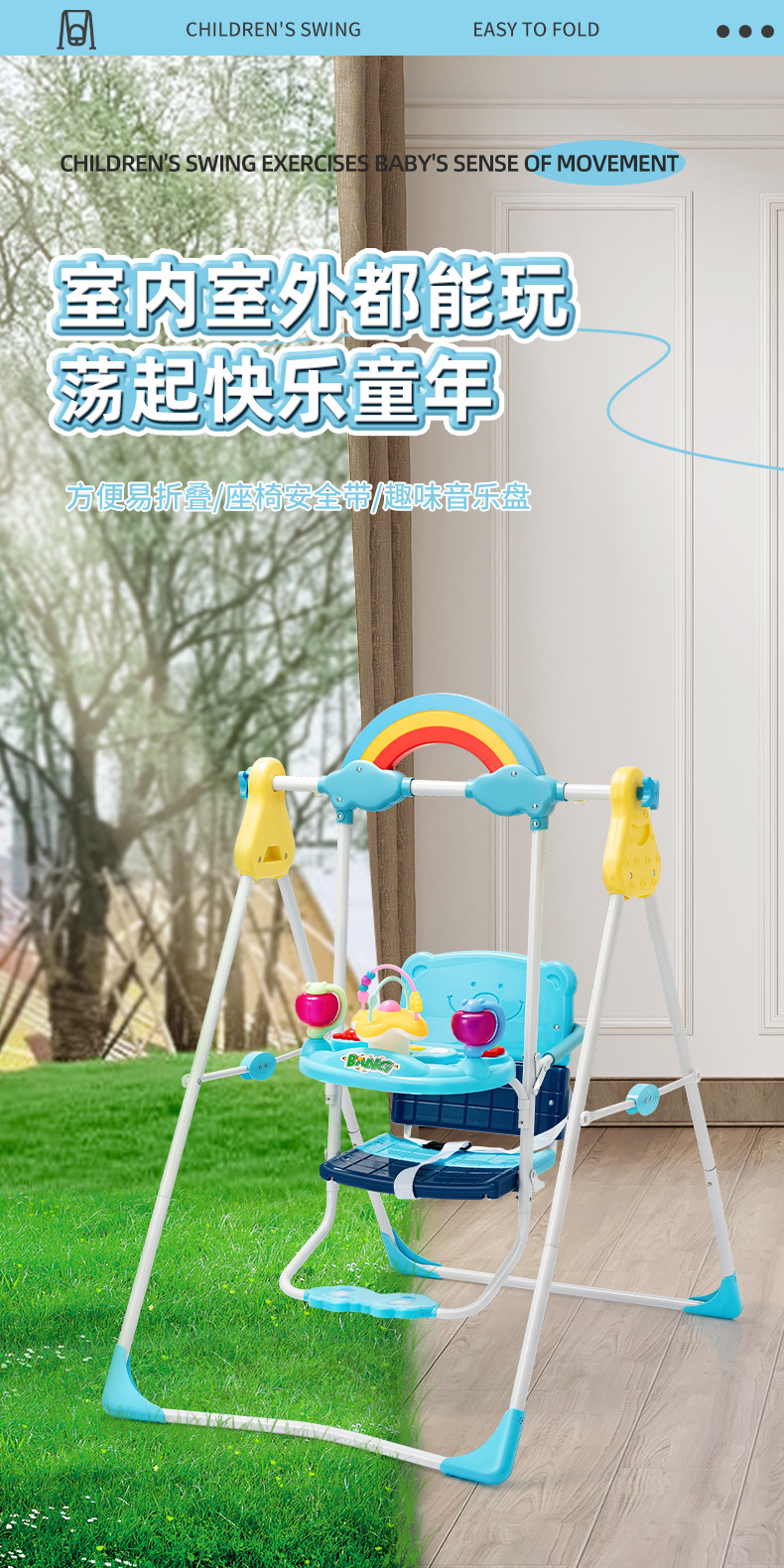 家用婴儿秋千架子室内宝宝幼儿童荡秋千架可收纳户外庭院摇椅支架