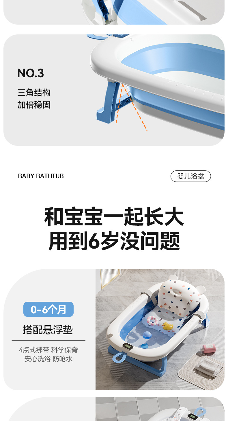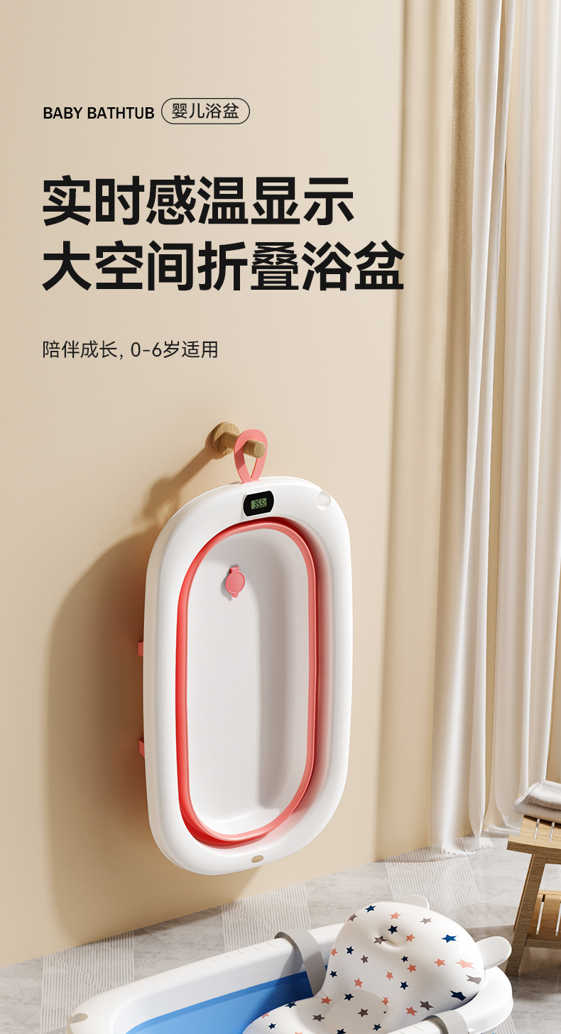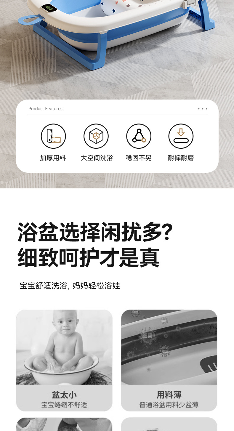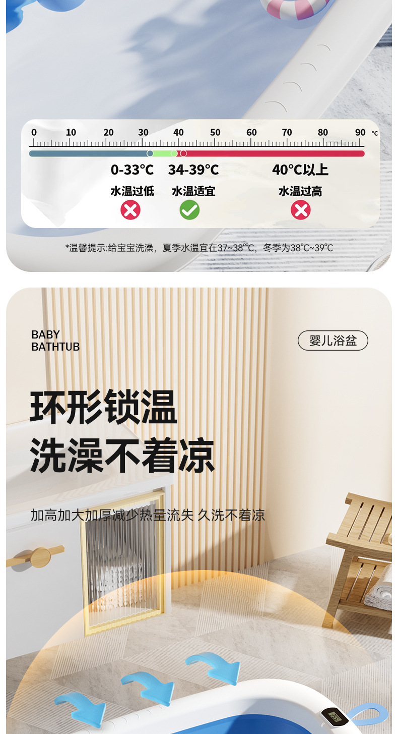 可折叠感温宝宝浴盆数显泡澡桶大号洗澡桶新生儿童用品婴儿洗澡盆