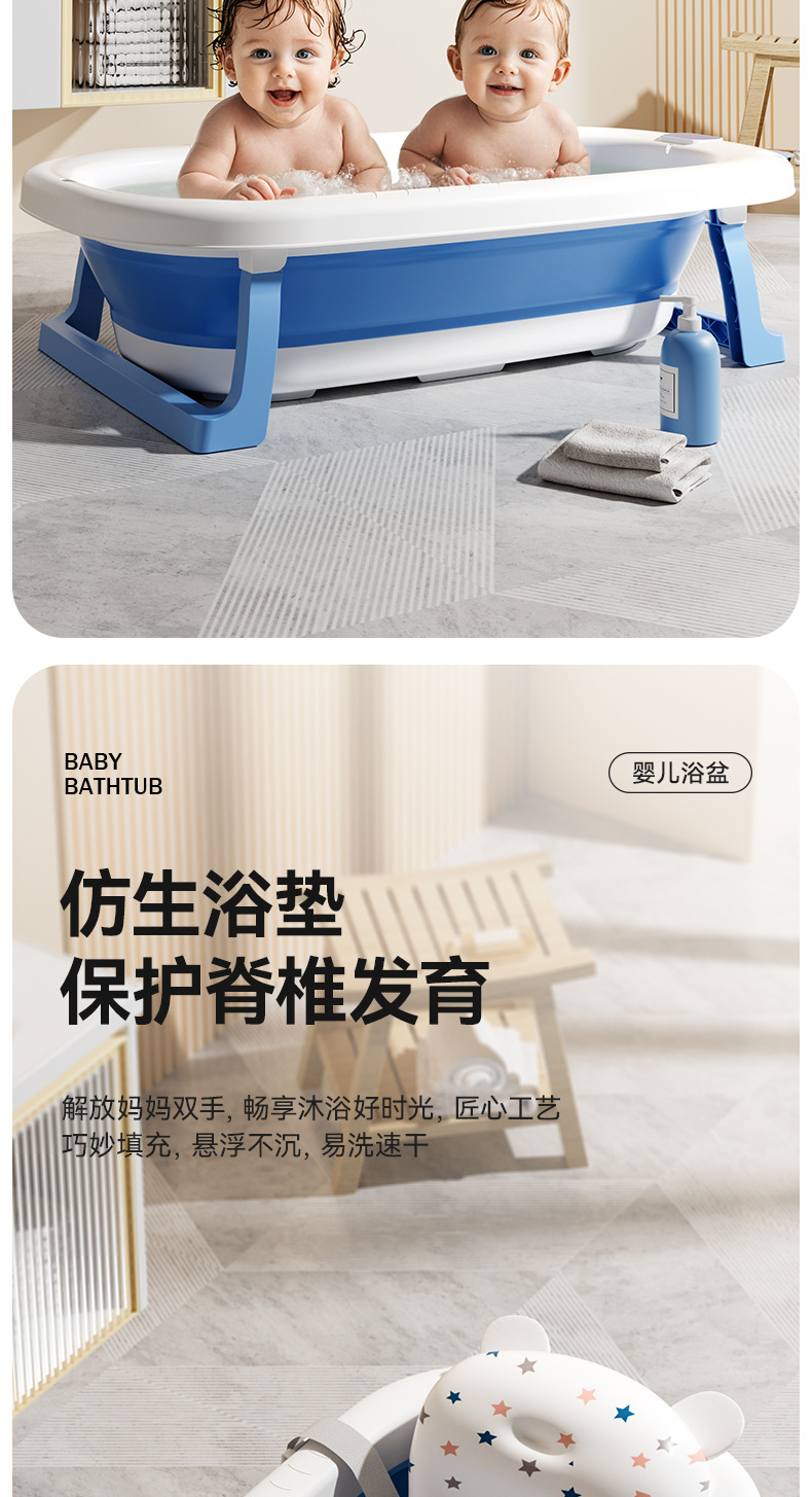 加高婴儿洗澡浴盆宝宝浴桶大号折叠坐躺小孩家用新生儿用品洗澡桶