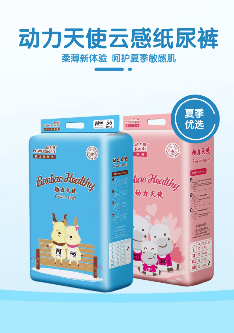 拉拉裤L码—50片,拉拉裤XL码—46片,拉拉裤2XL码—42片,尿不湿S码—62片,尿不湿XL码—46片,拉拉裤3XL码—38片,尿不湿M码—56片,尿不湿L码—50片,尿不湿XXL码—42片