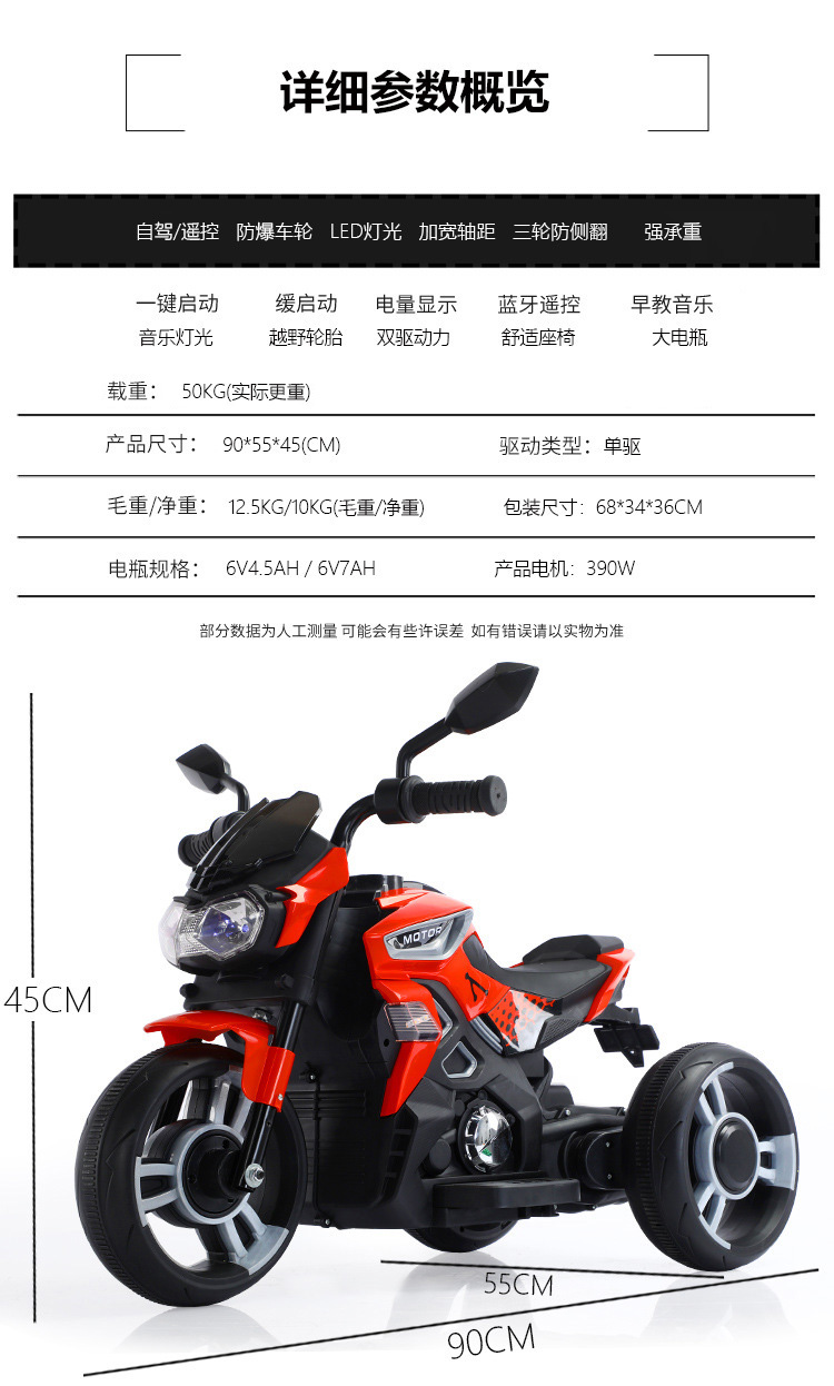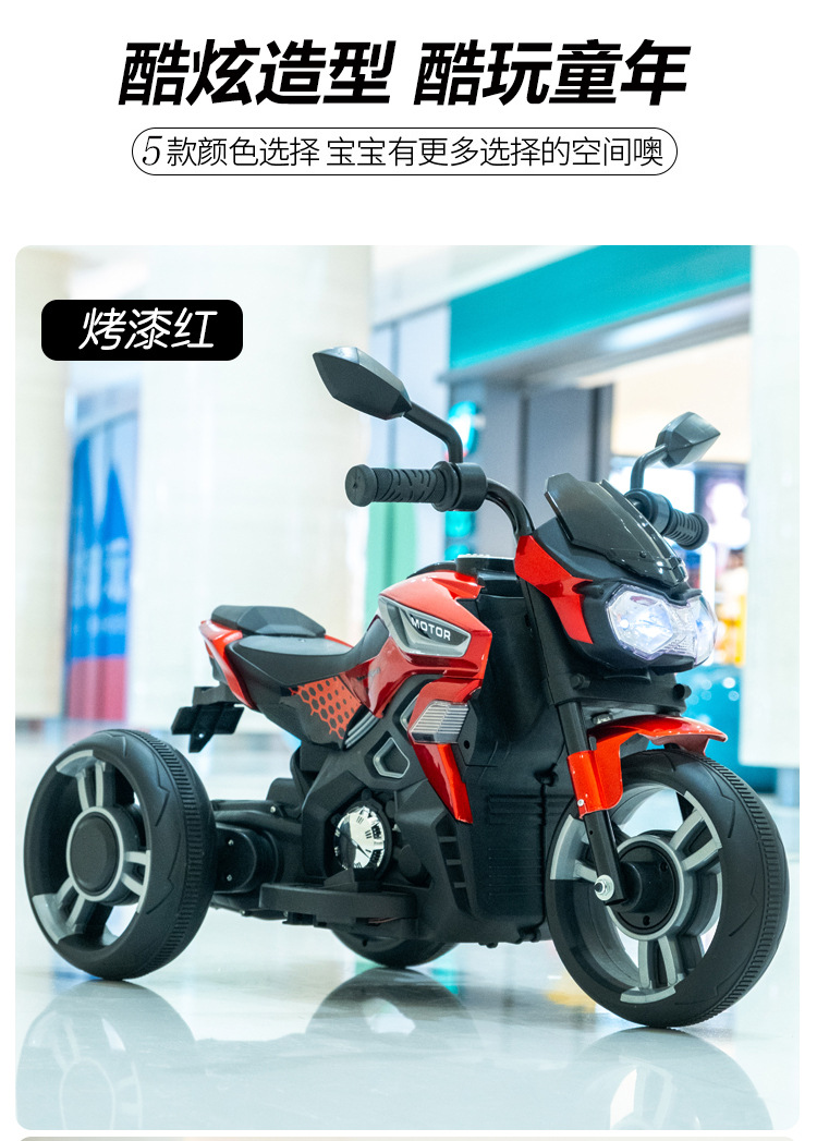 儿童电动摩托车三轮车男女孩宝宝电瓶车小孩可坐人充电遥控玩具车