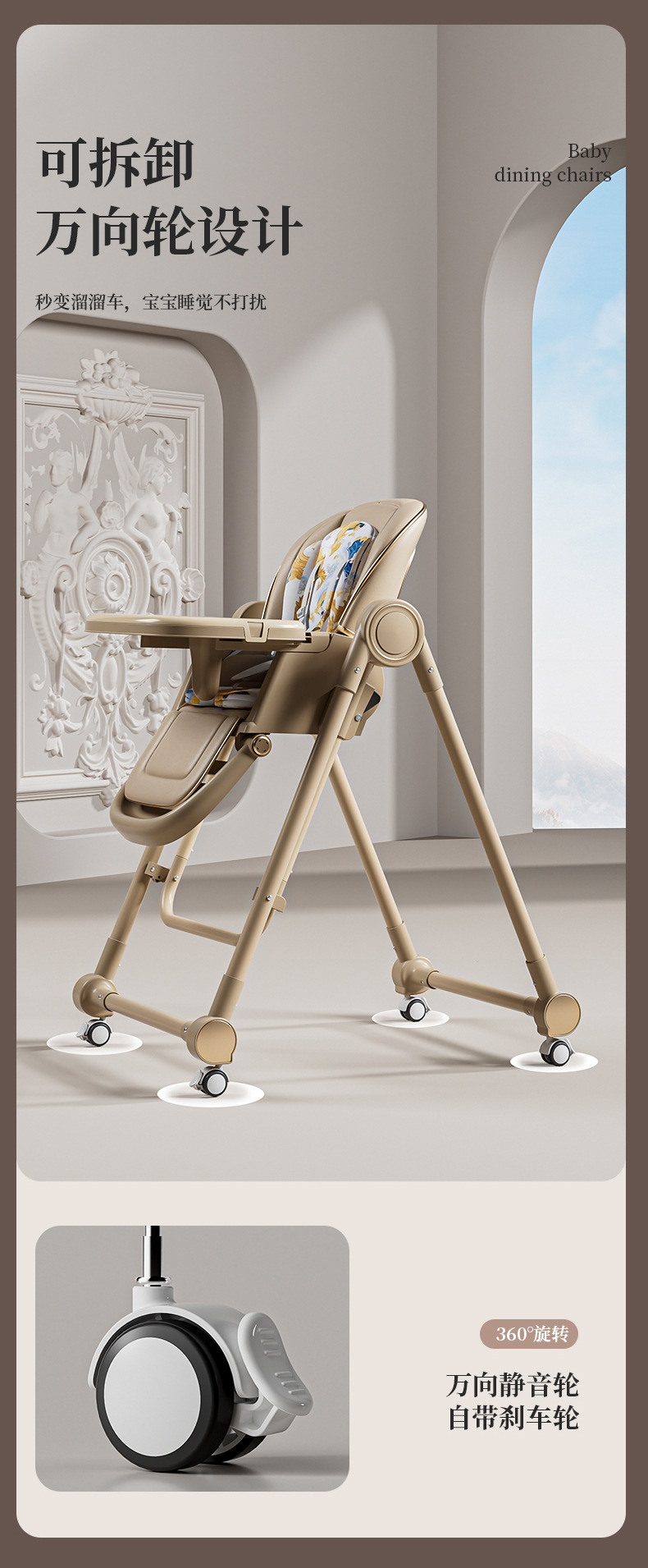 灰石白/云母灰/摩卡棕低配【pu垫+双餐盘】,灰石白/云母灰/摩卡棕高配免安装【pu垫+双餐盘+万向轮】