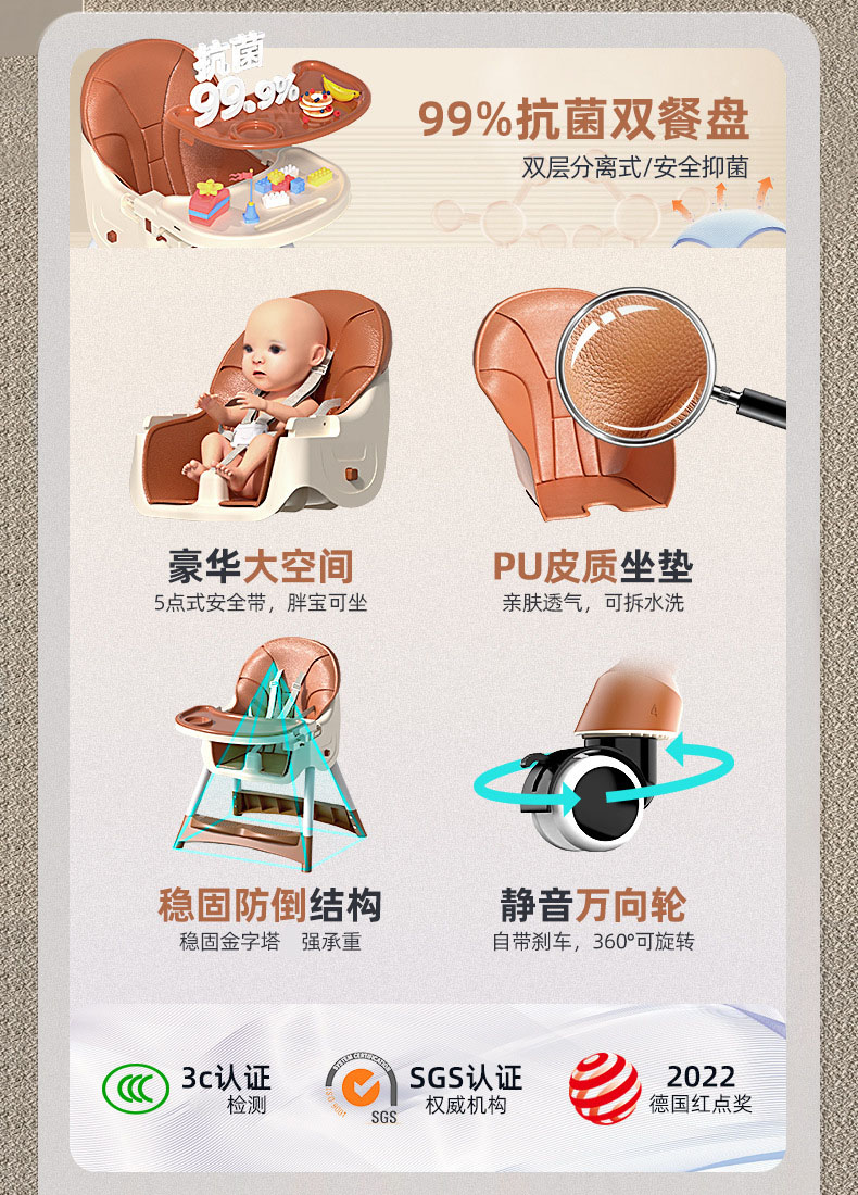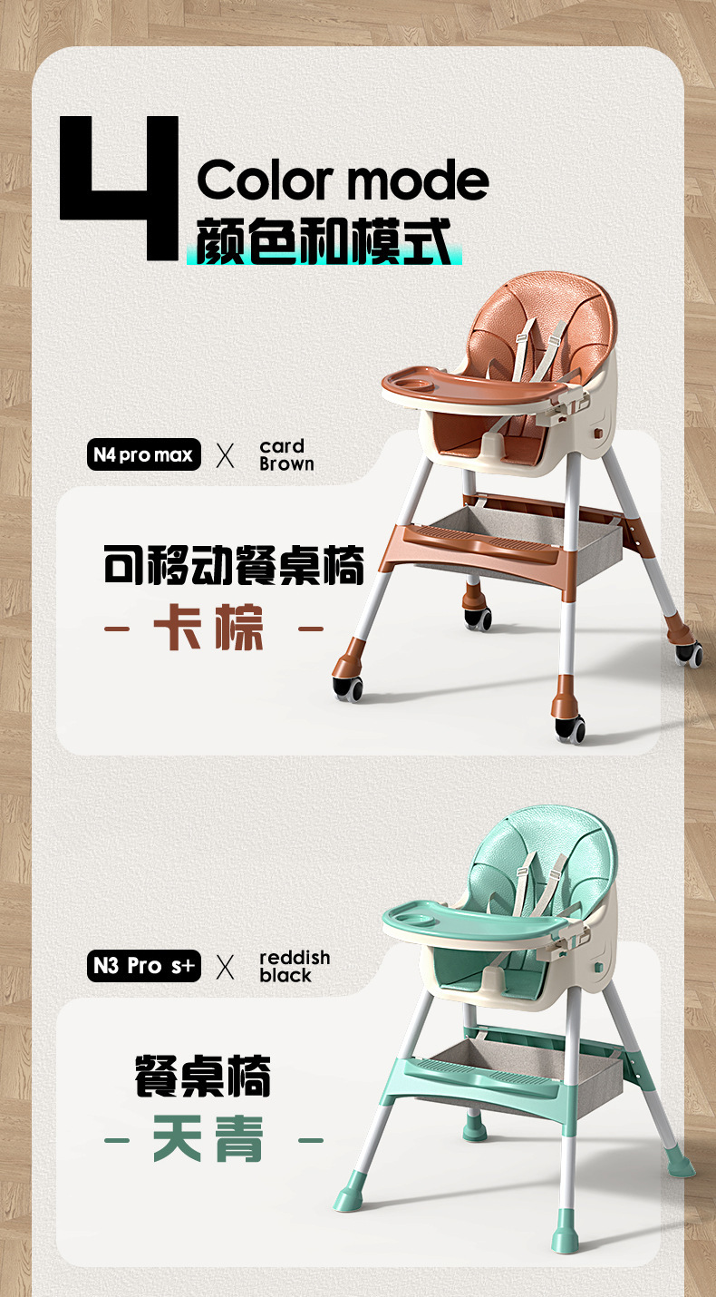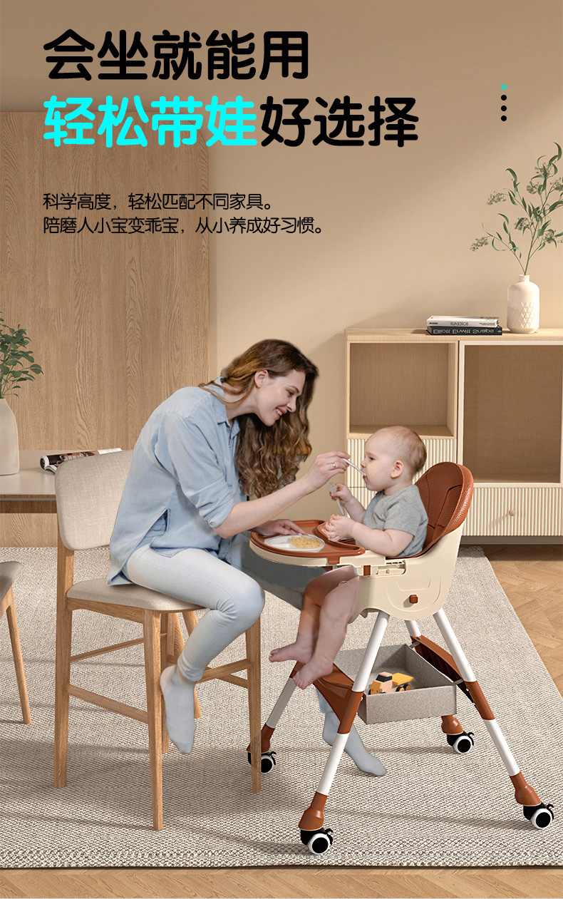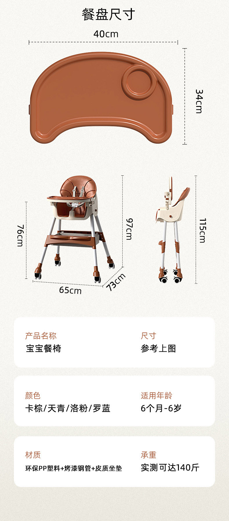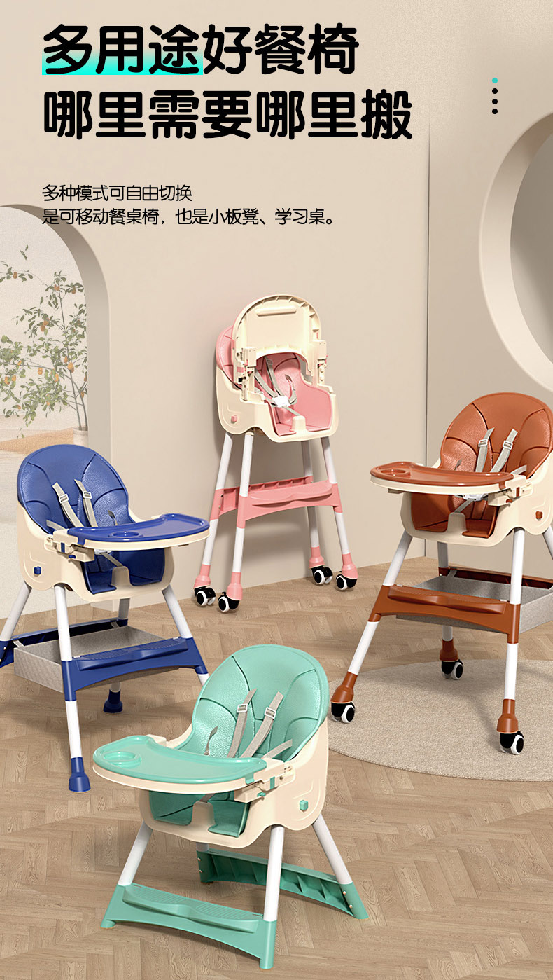 儿童餐桌椅宝宝餐椅多种功能0到6岁宝宝婴儿高低可调椅便携式可折叠
