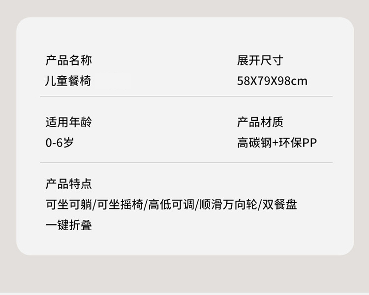宝宝餐椅多用途皮质座套宝宝餐桌婴幼儿大餐盘吃饭椅摇椅二合一