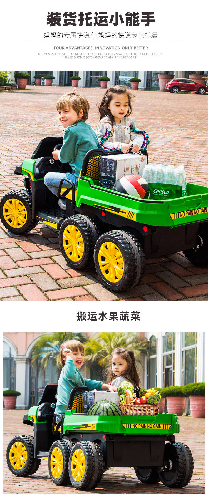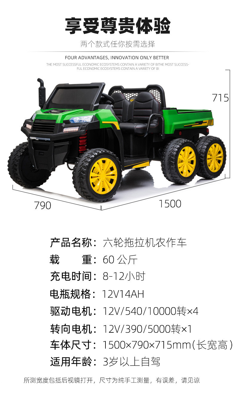 拖拉机大儿童电动车可坐双人农夫车电动玩具汽车四轮可遥控