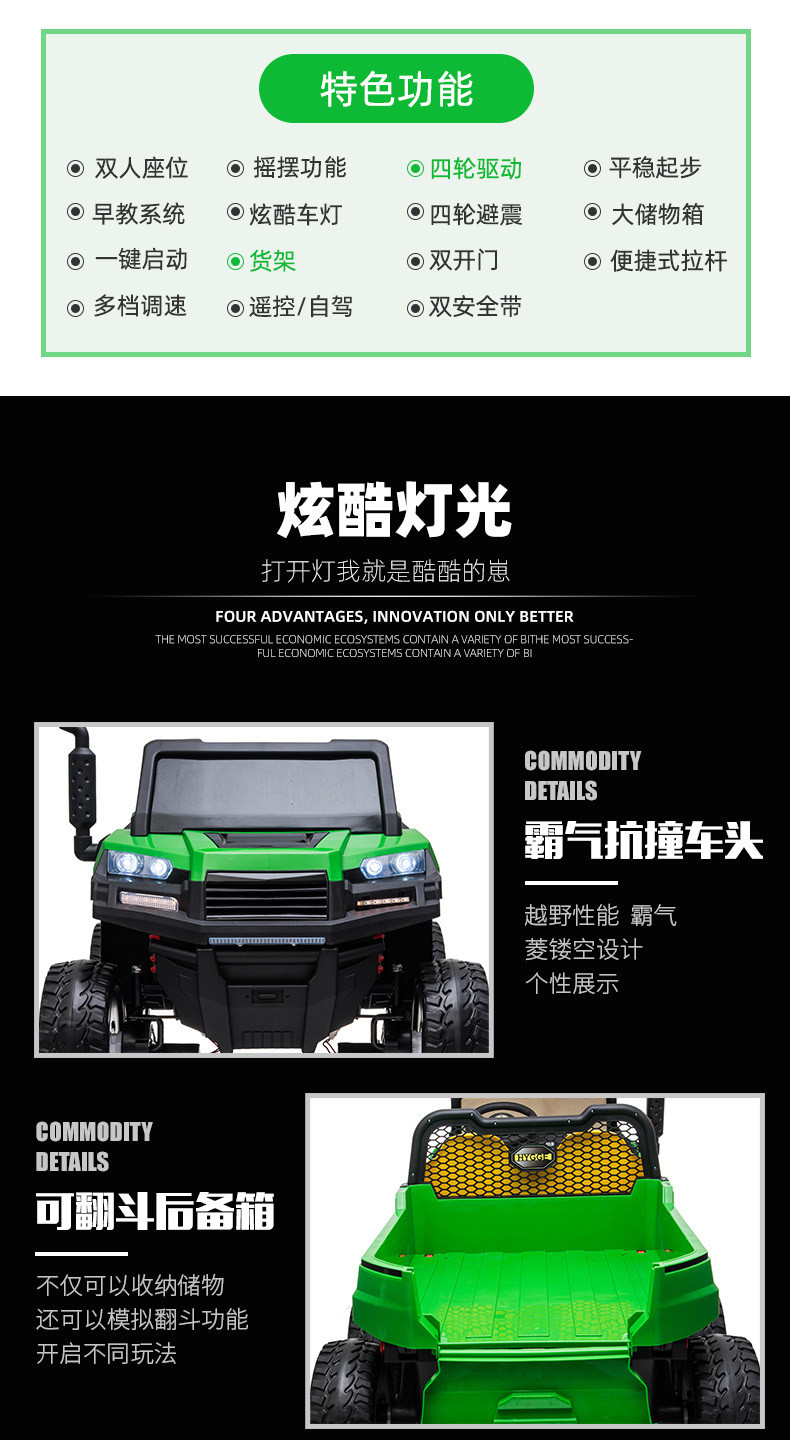 红色/黑色/绿色【四驱+14A电瓶+防爆软轮+可卸车斗】