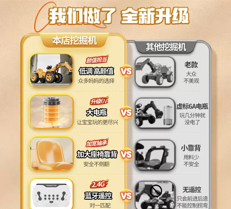 加大儿童电动挖掘机遥控玩具可坐可骑挖土机工程车四轮