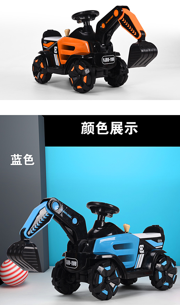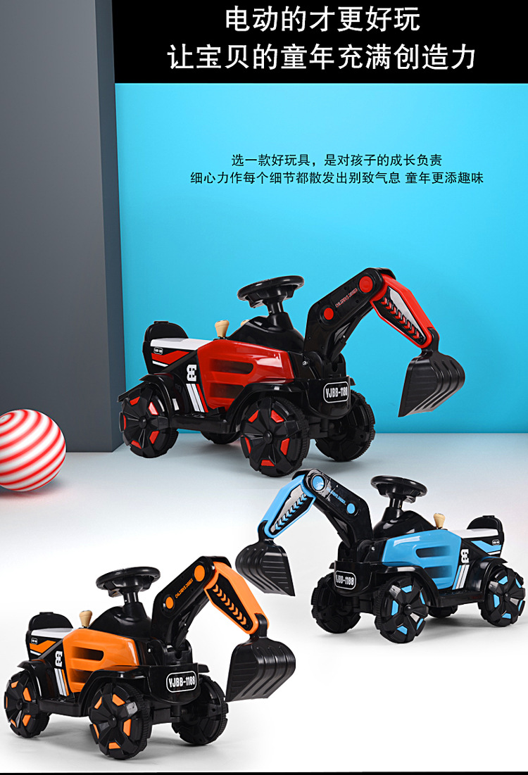 儿童电动车可坐人男女宝宝四轮挖掘机小孩自驾滑行车电动挖土机