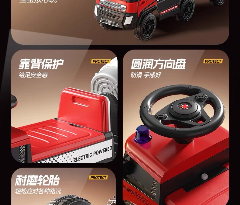2025新款儿童消防车汽车玩具男孩可坐滑行车滑行儿童环卫车玩具