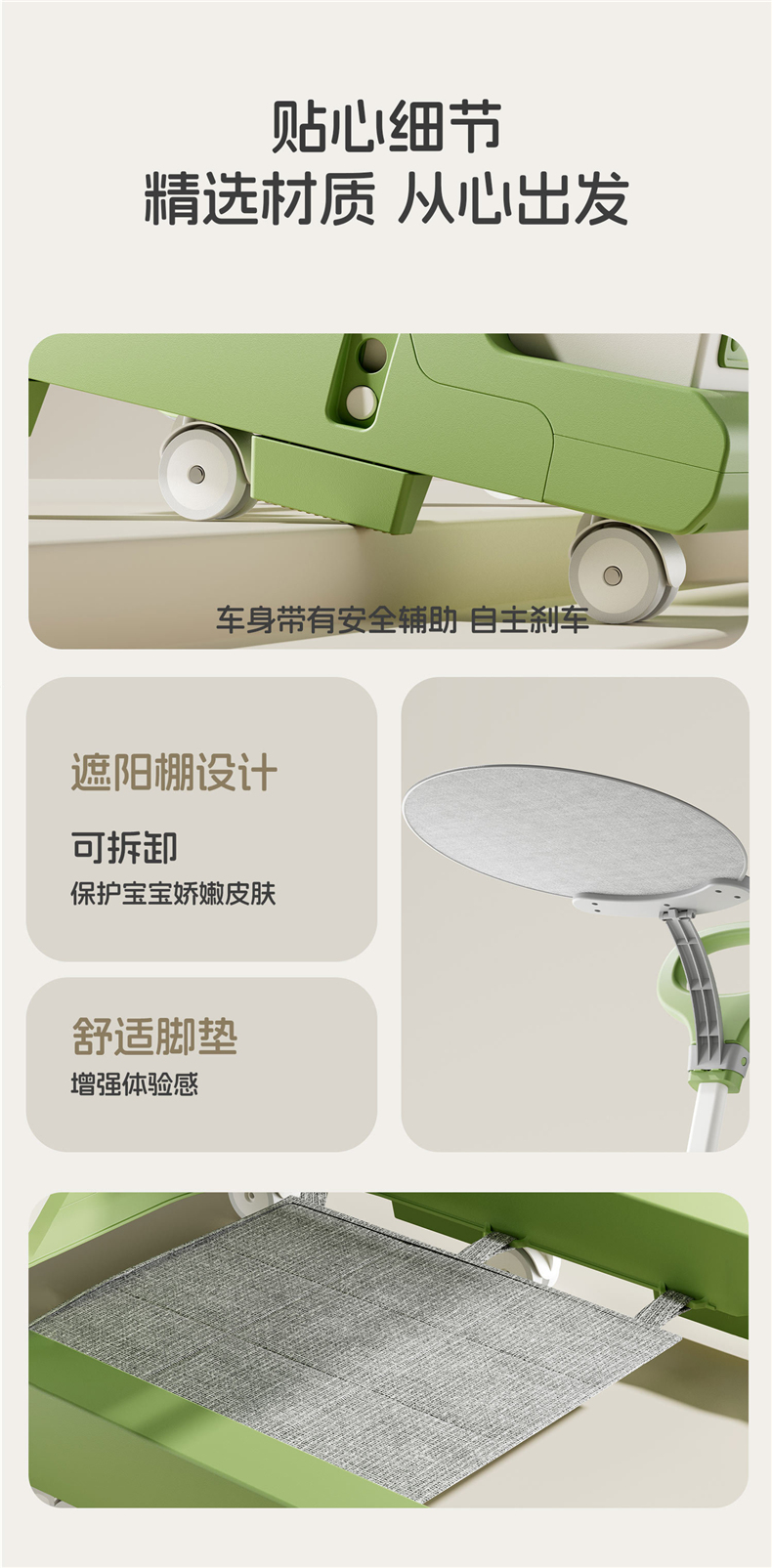 活力红,映素灰,摩登蓝,森屿绿。推把车蓬,脚垫